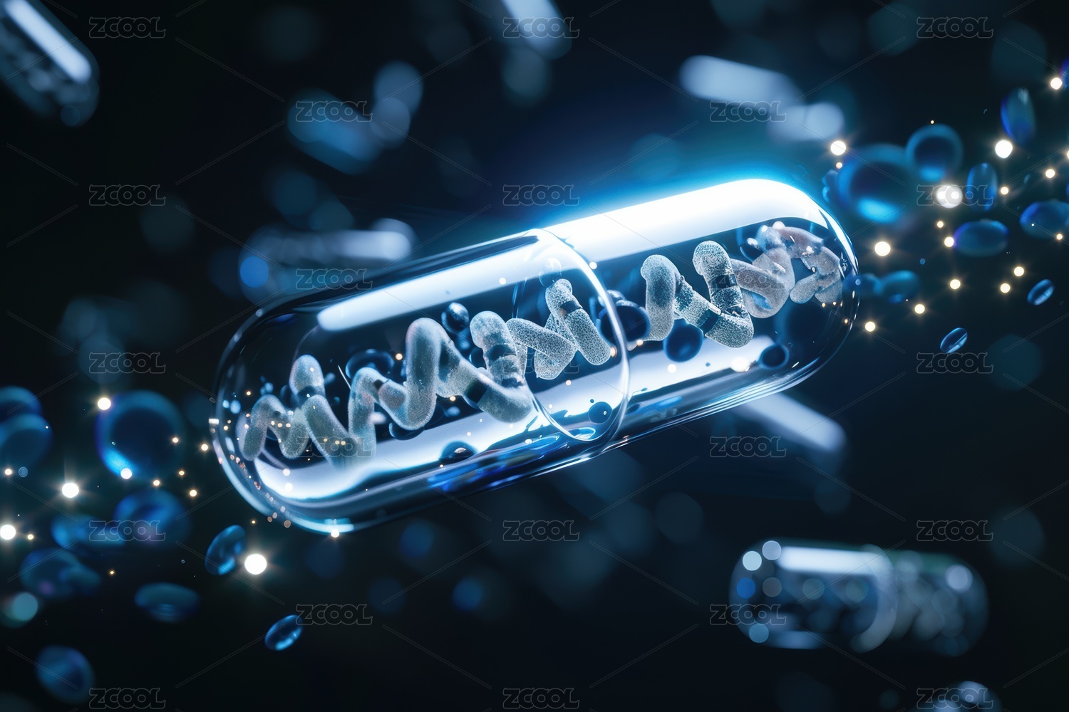 透明药丸中的基因链