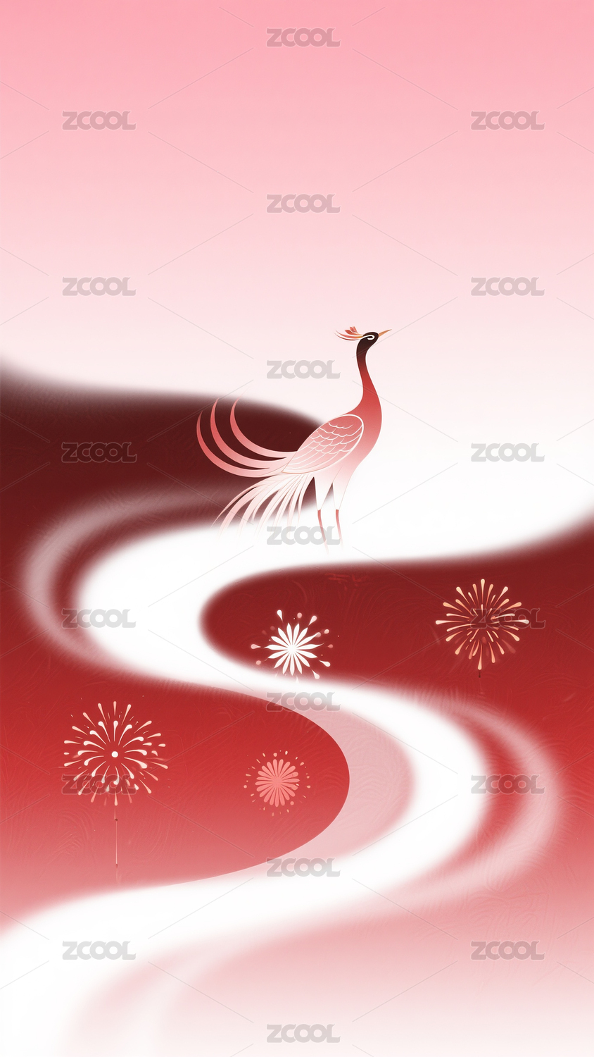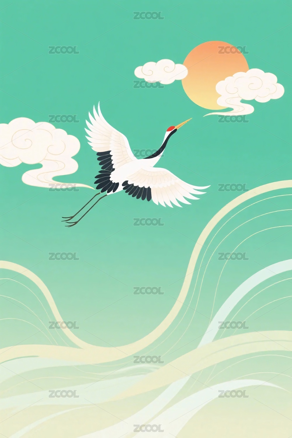 重阳节飞舞丹顶鹤传统中国风干净背景插画