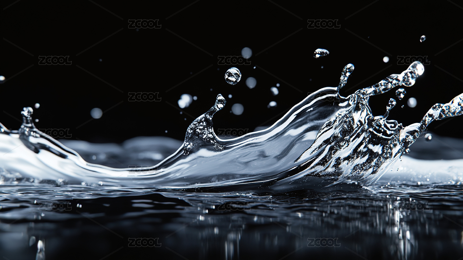实验室内的玻璃试管仪器与溅起的水花,三维渲