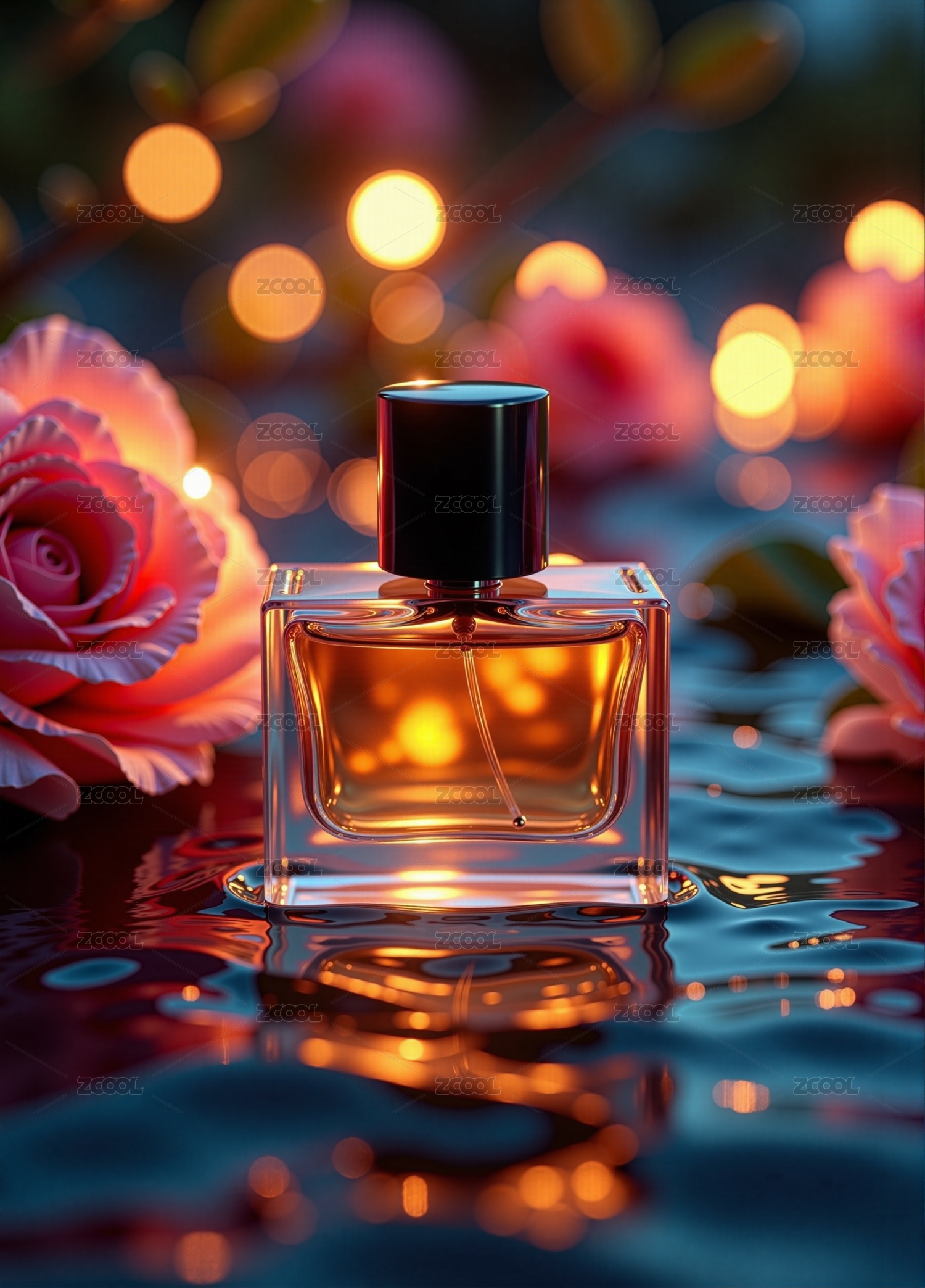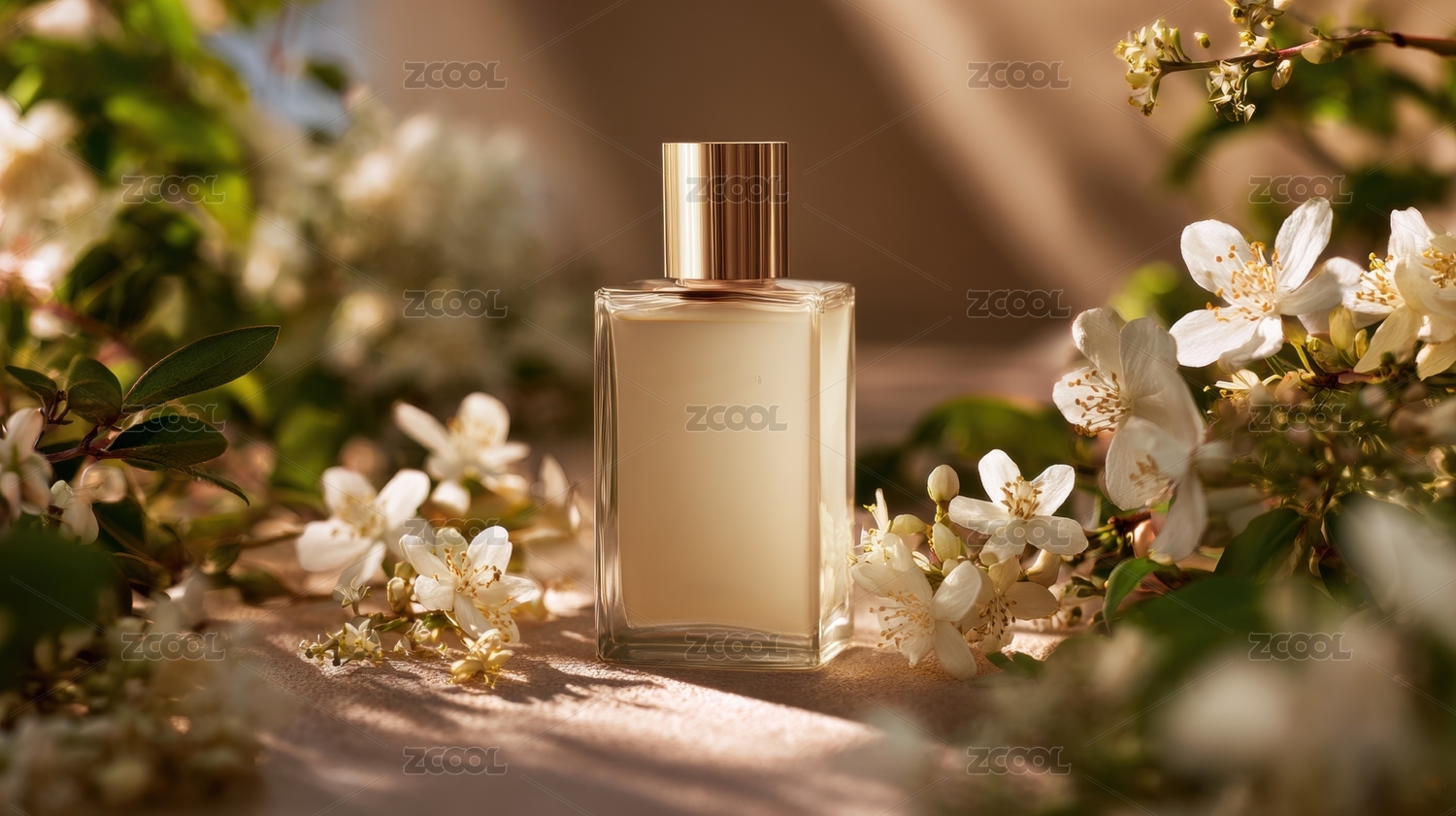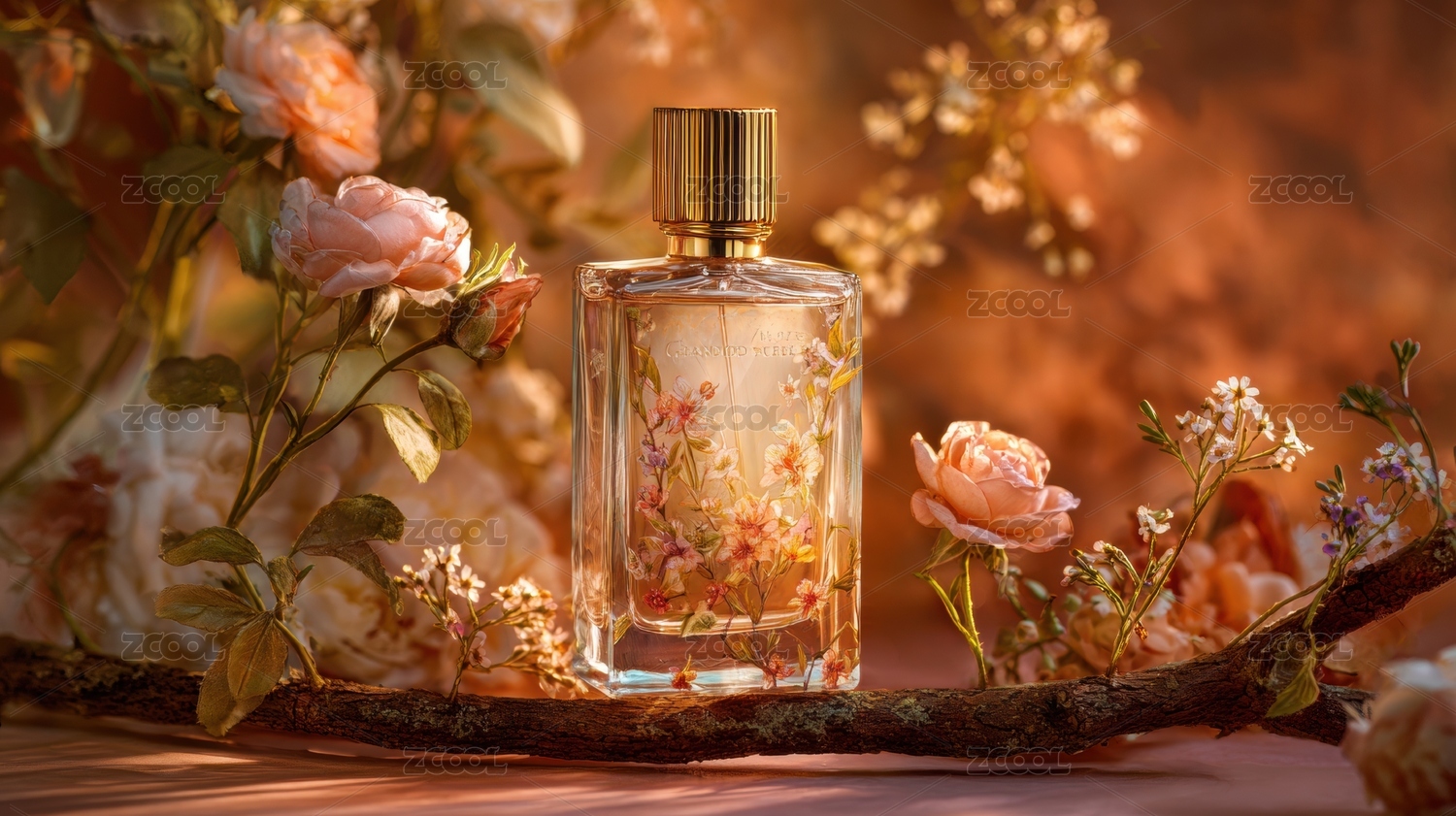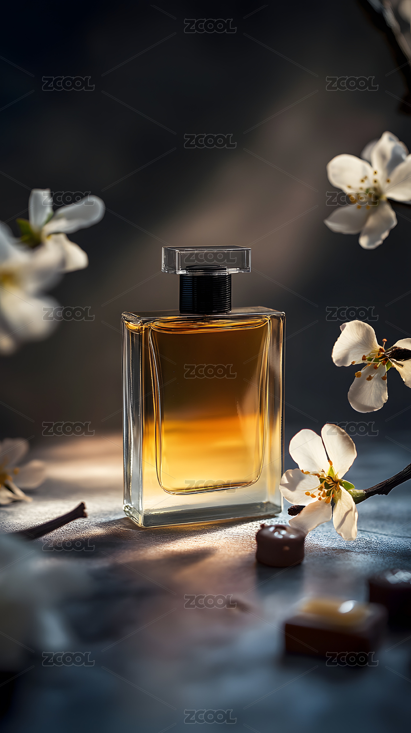 精致香水瓶配花朵优雅场景