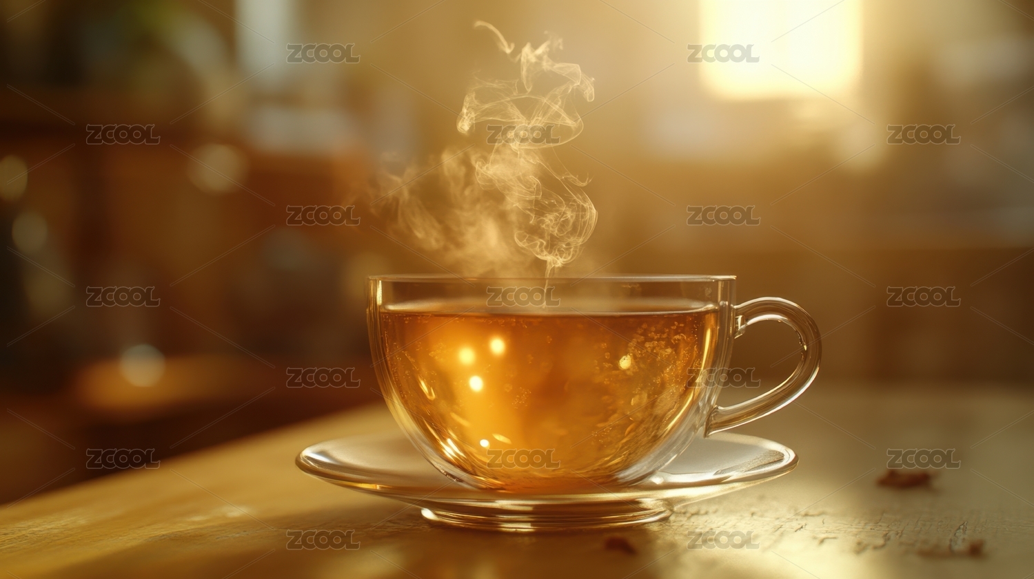 桌子上的茶水冒着热气