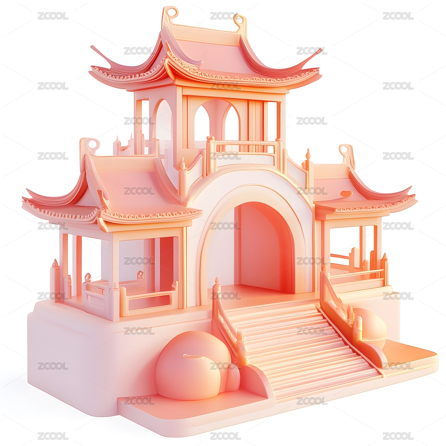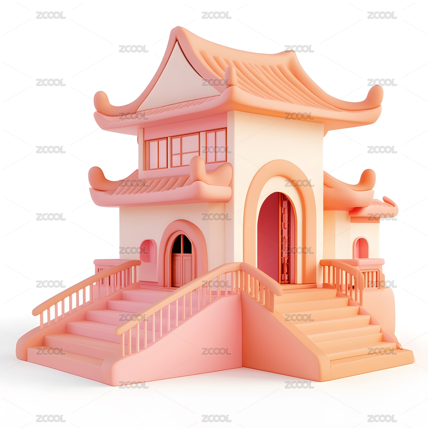 中国风古楼建筑传统国风古建筑国潮插画背景