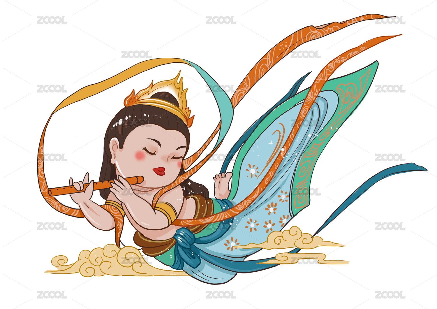 敦煌插画飞天吹笛