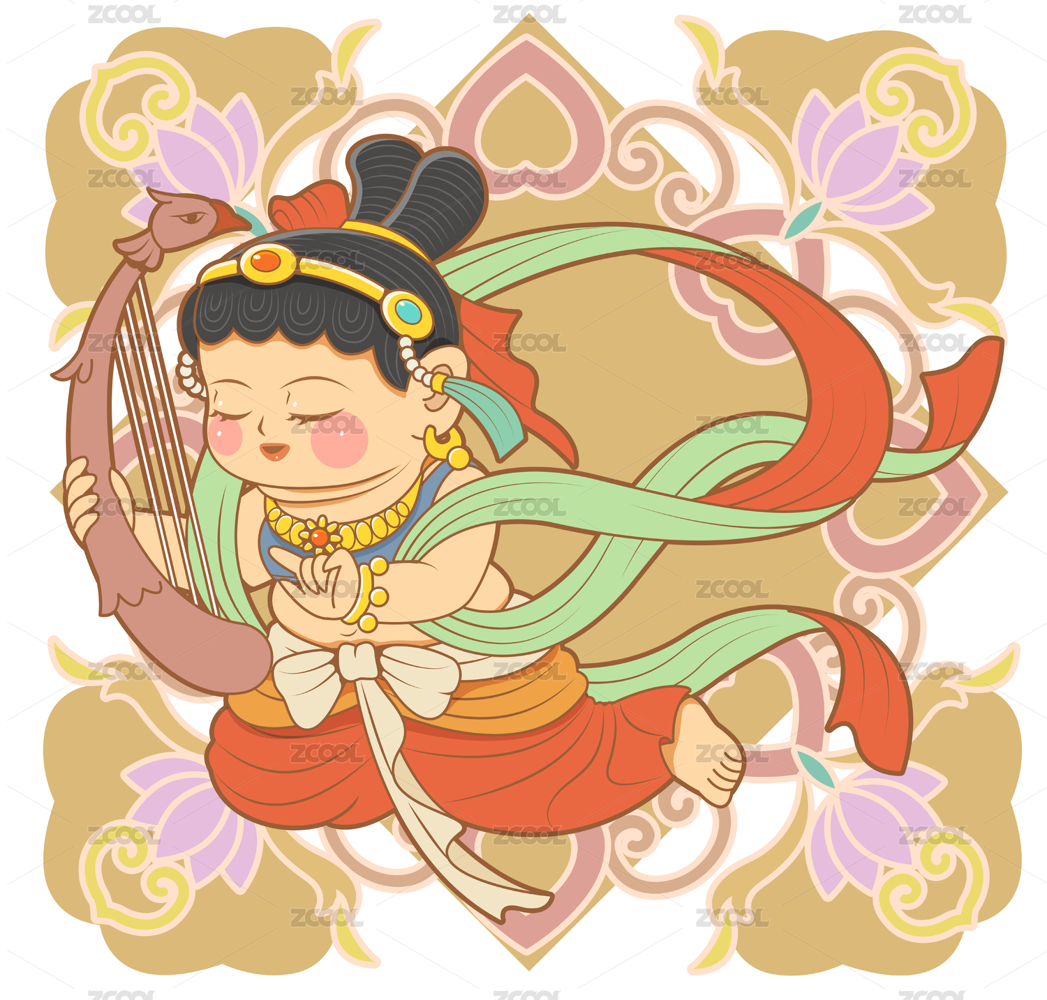 敦煌飞天国潮乐器人物矢量插画