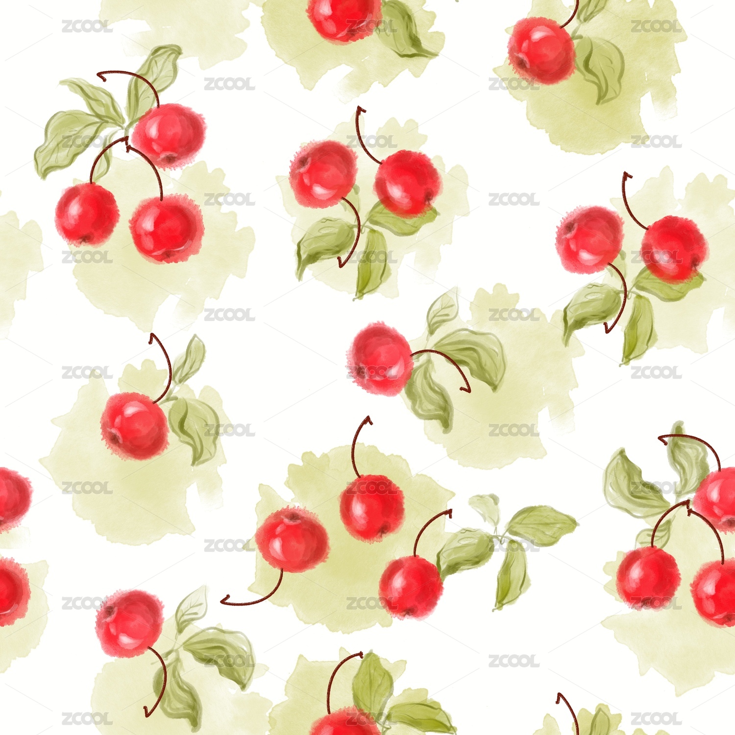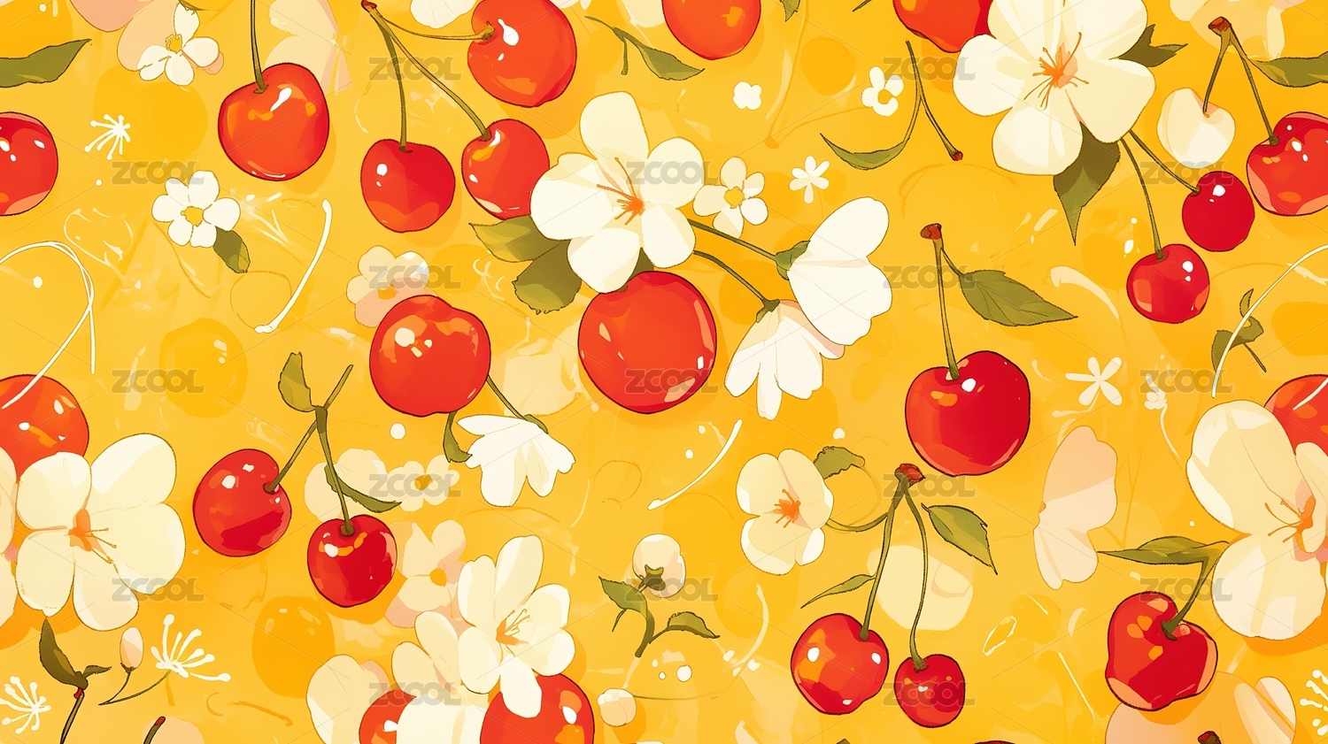 夏日樱桃水果系列手绘插画无缝壁纸背景