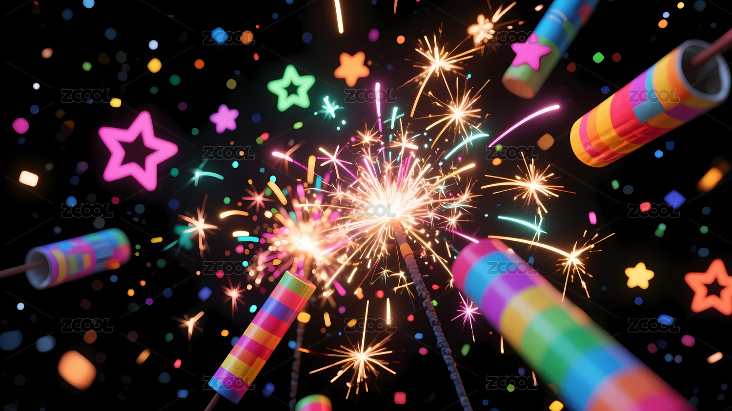 多彩节日烟花星星