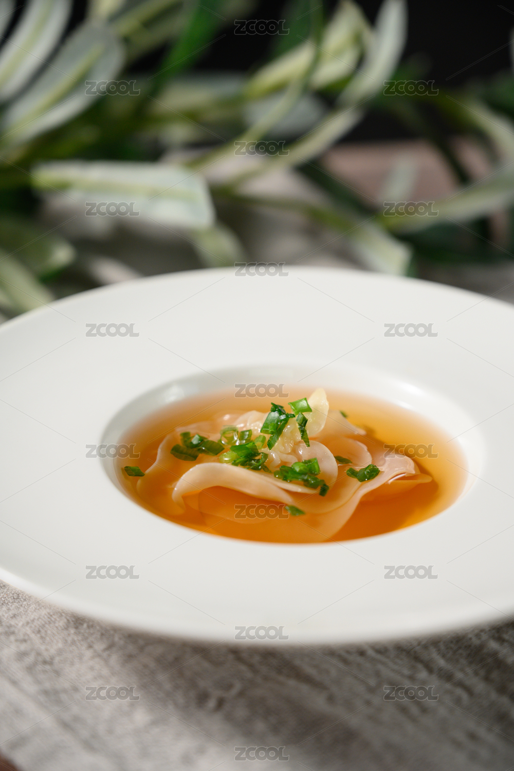 桌面上的盘子里的美味可口的清汤白玉云耳