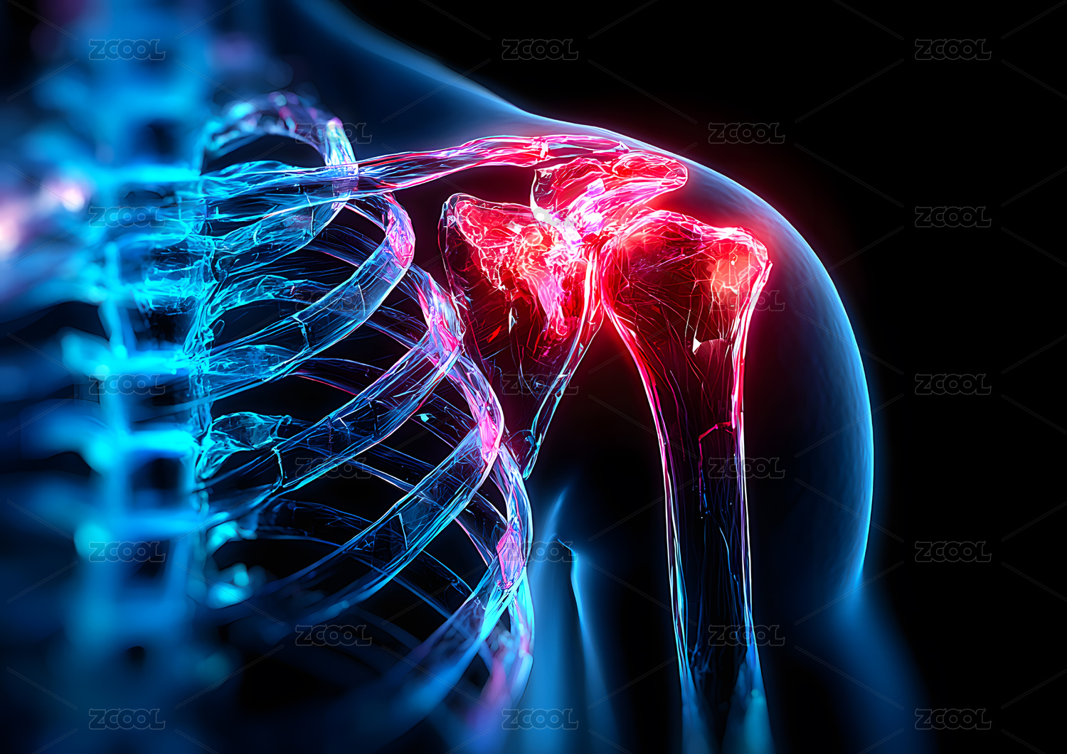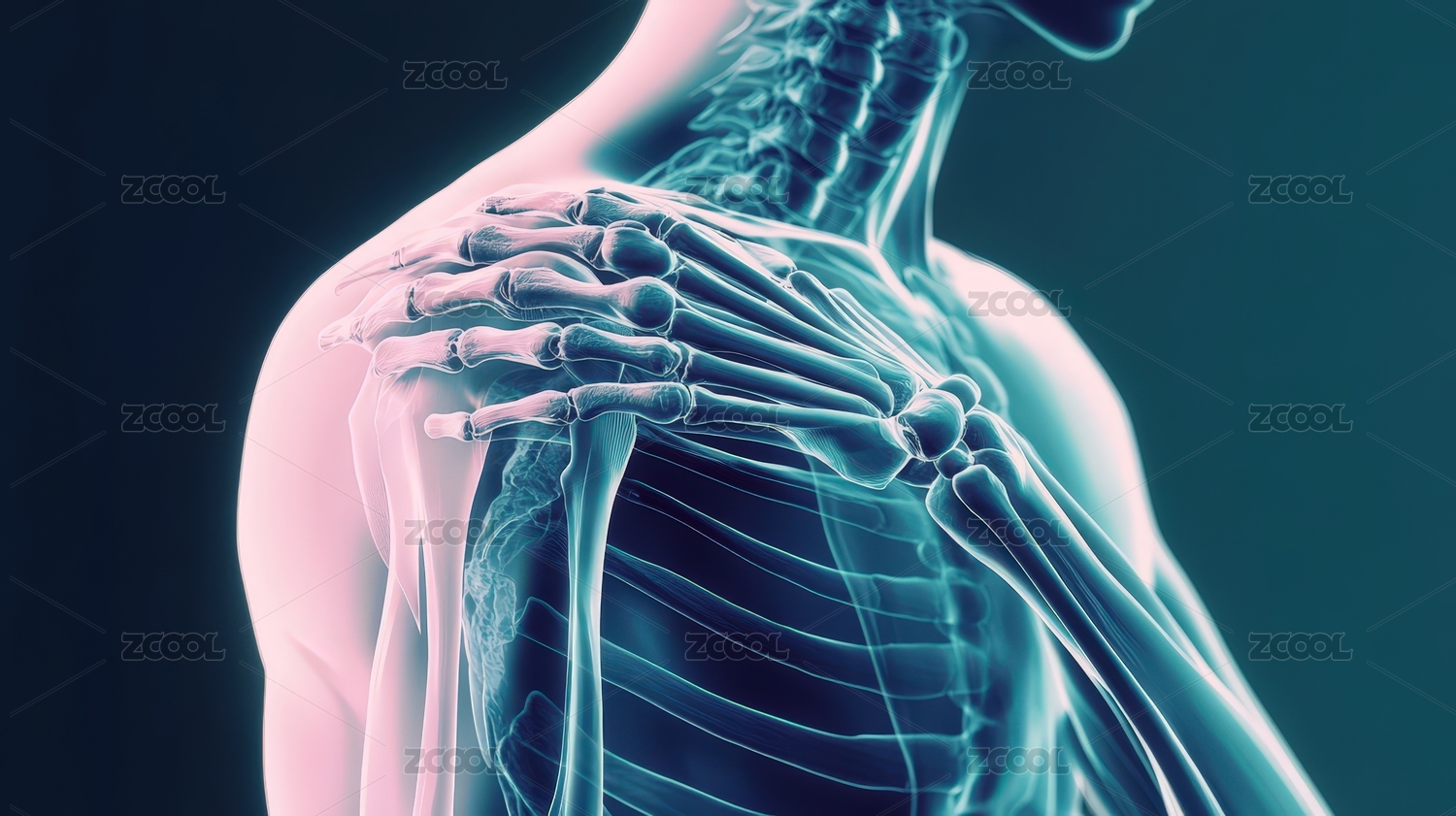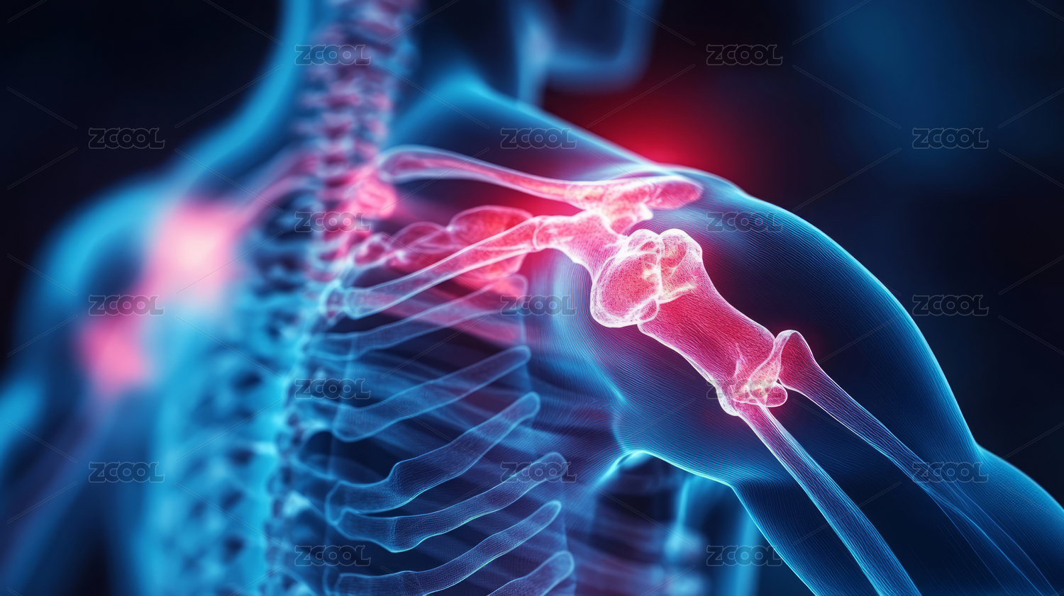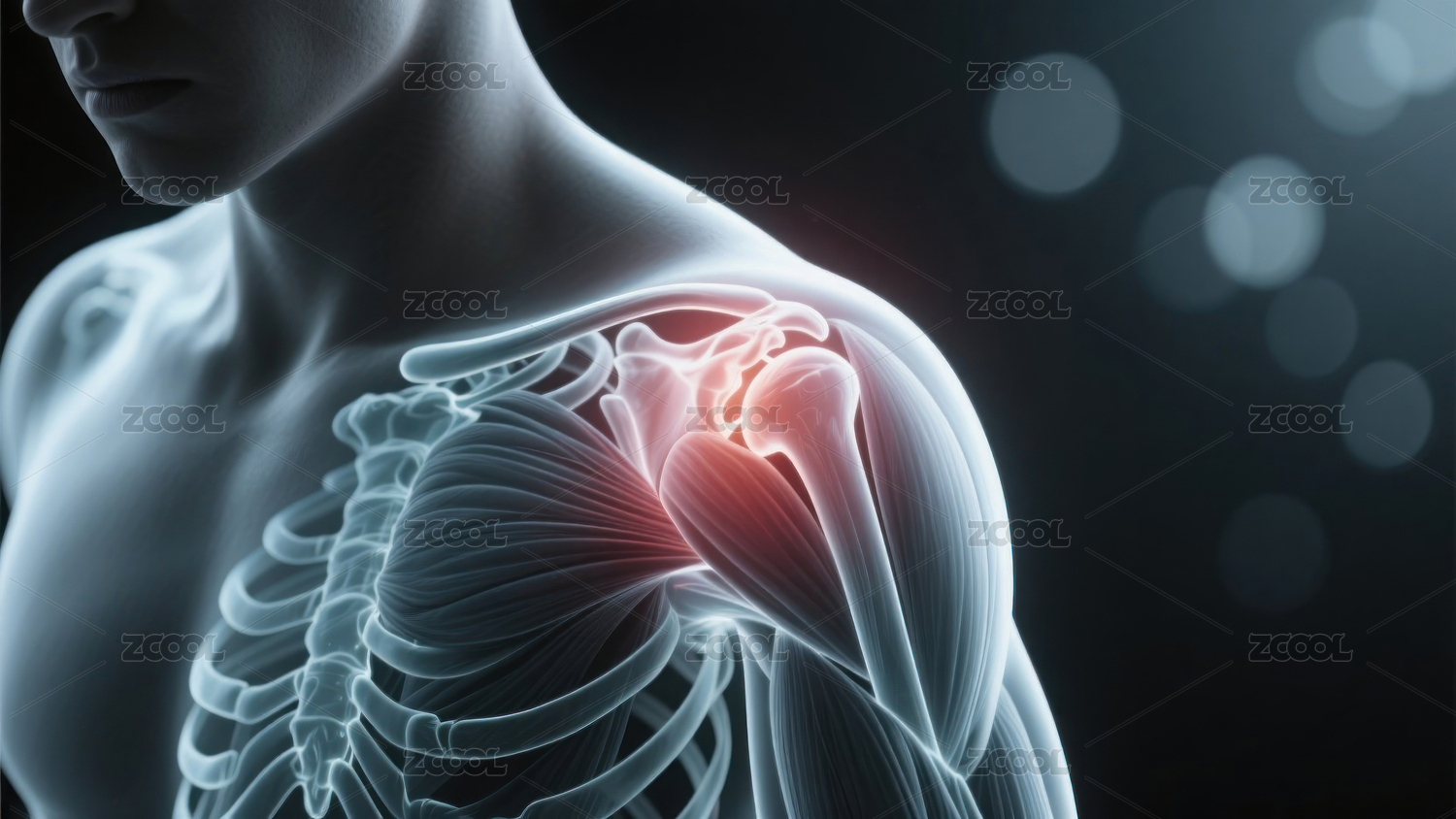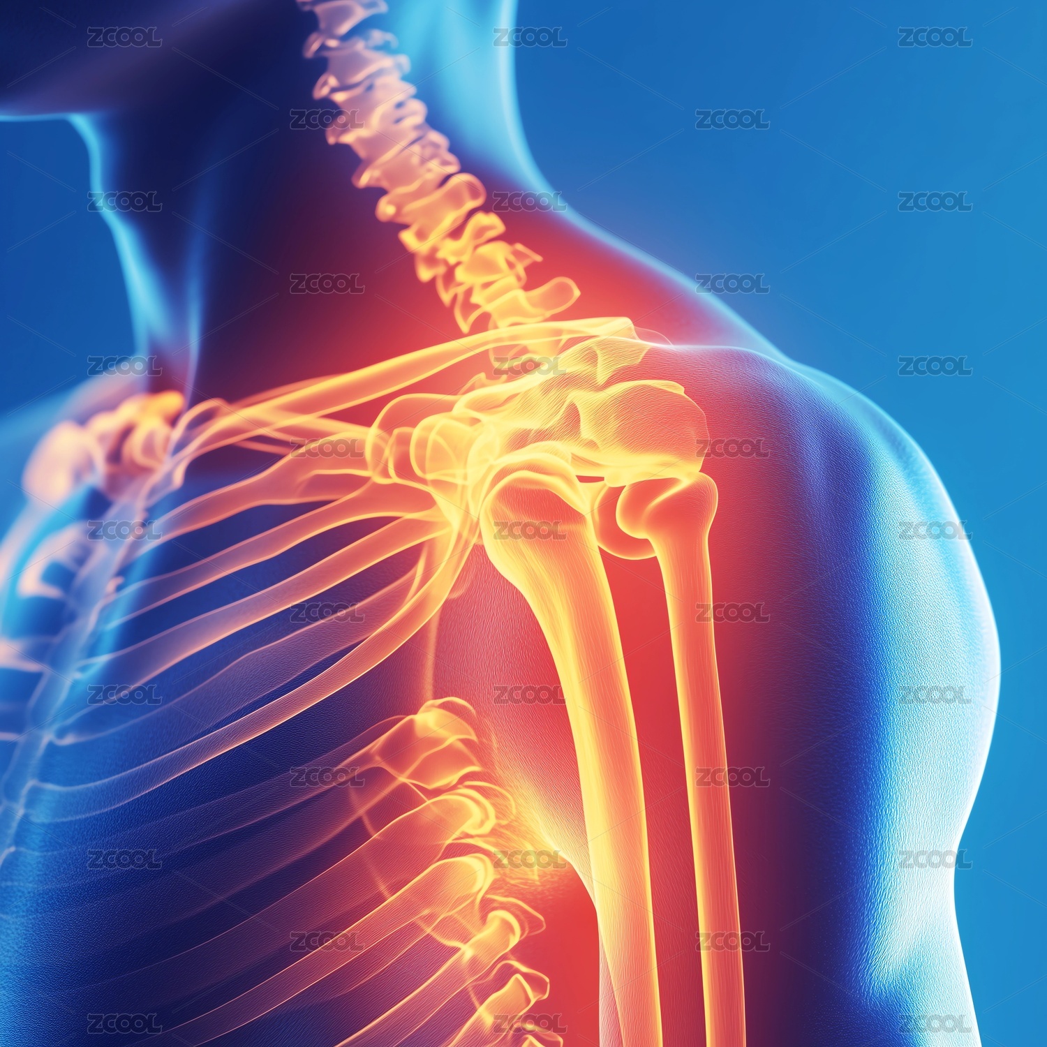 肩部疼痛的骨骼透视图