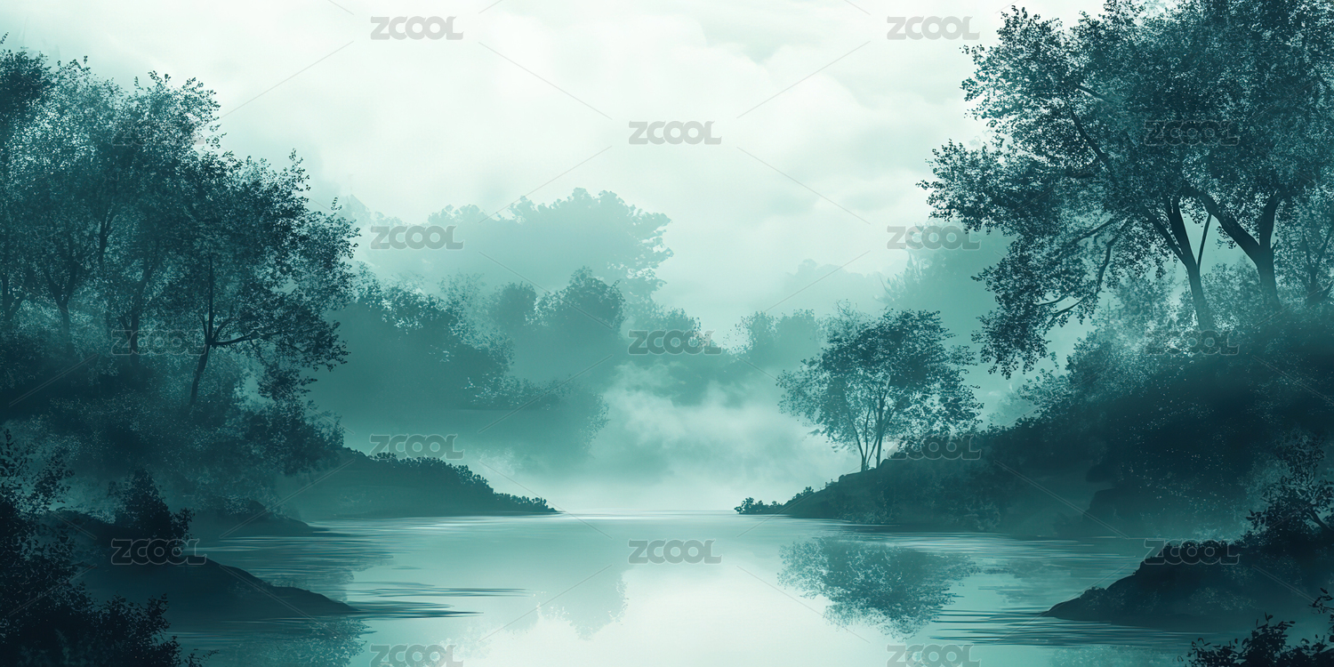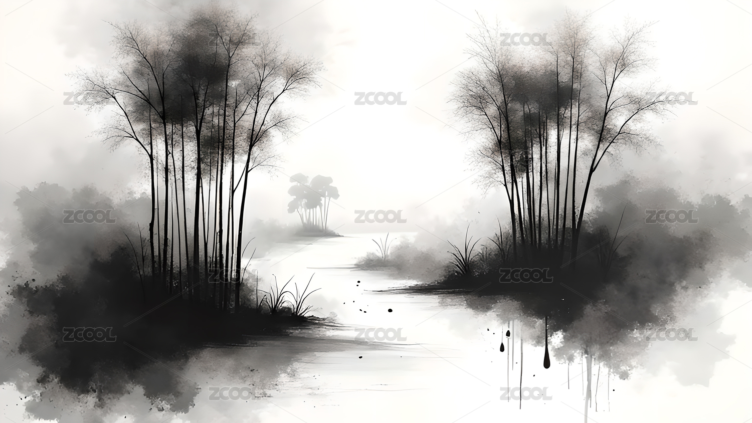湖泊,宁静,平静,意境,自然,水墨画,写意,山水画,树木,静谧