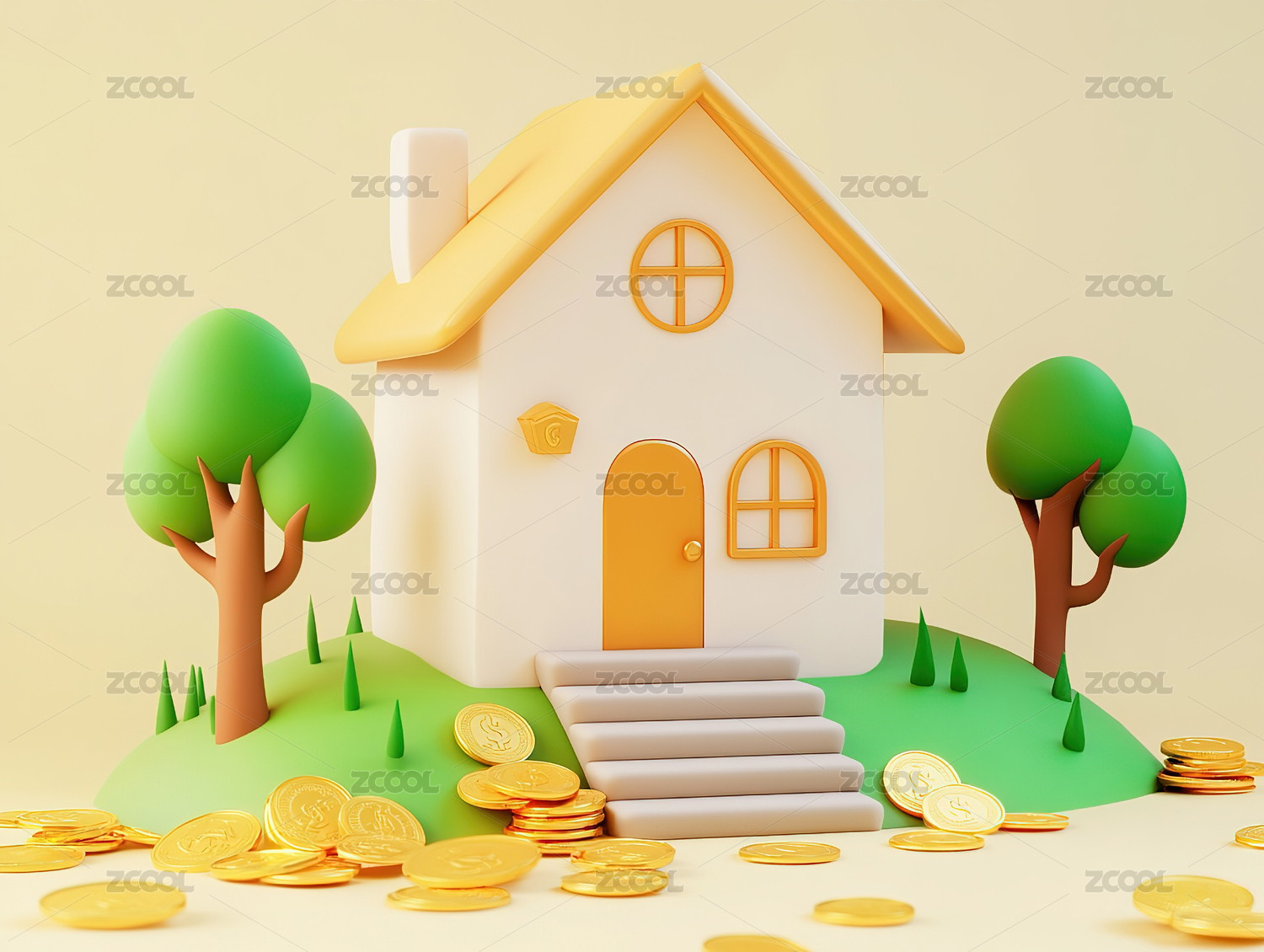 三维, 立体, 3D, 房屋, 金币, 增长, 上涨, 价格, 经济, 财务