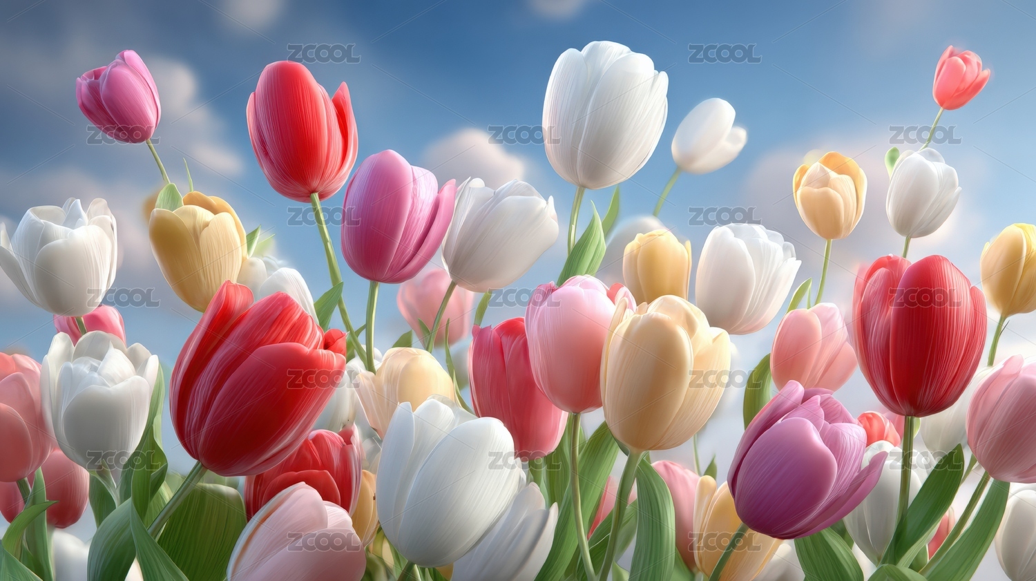 郁金香, 蜜蜂, 粉色, 白色, 绿叶。