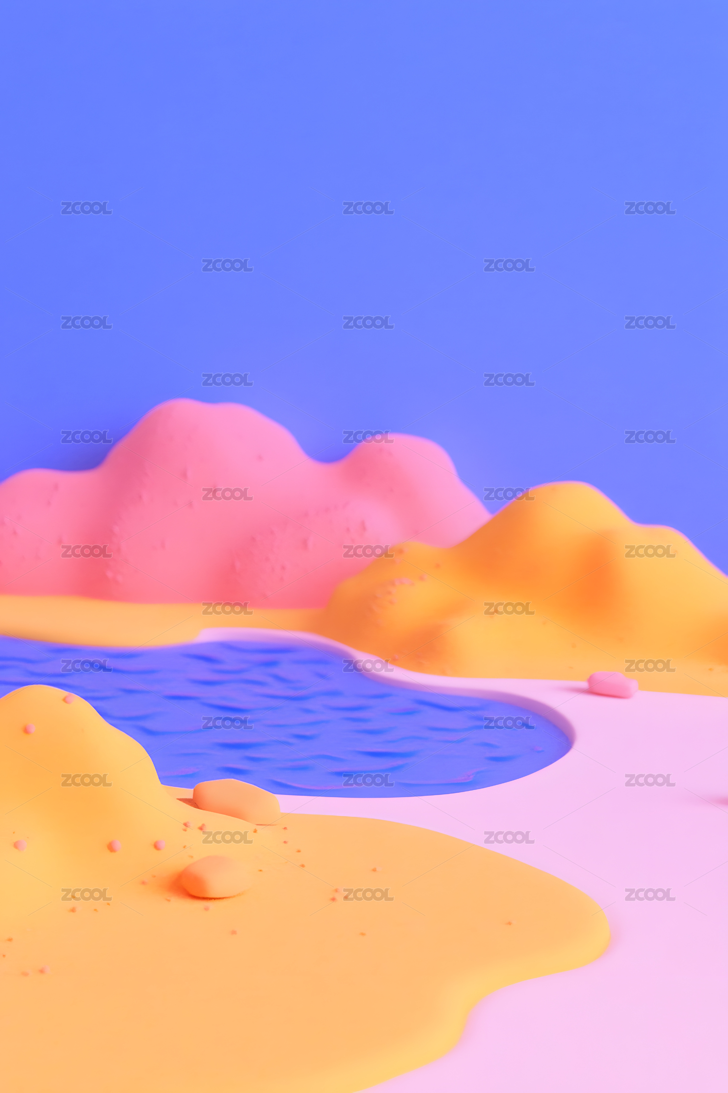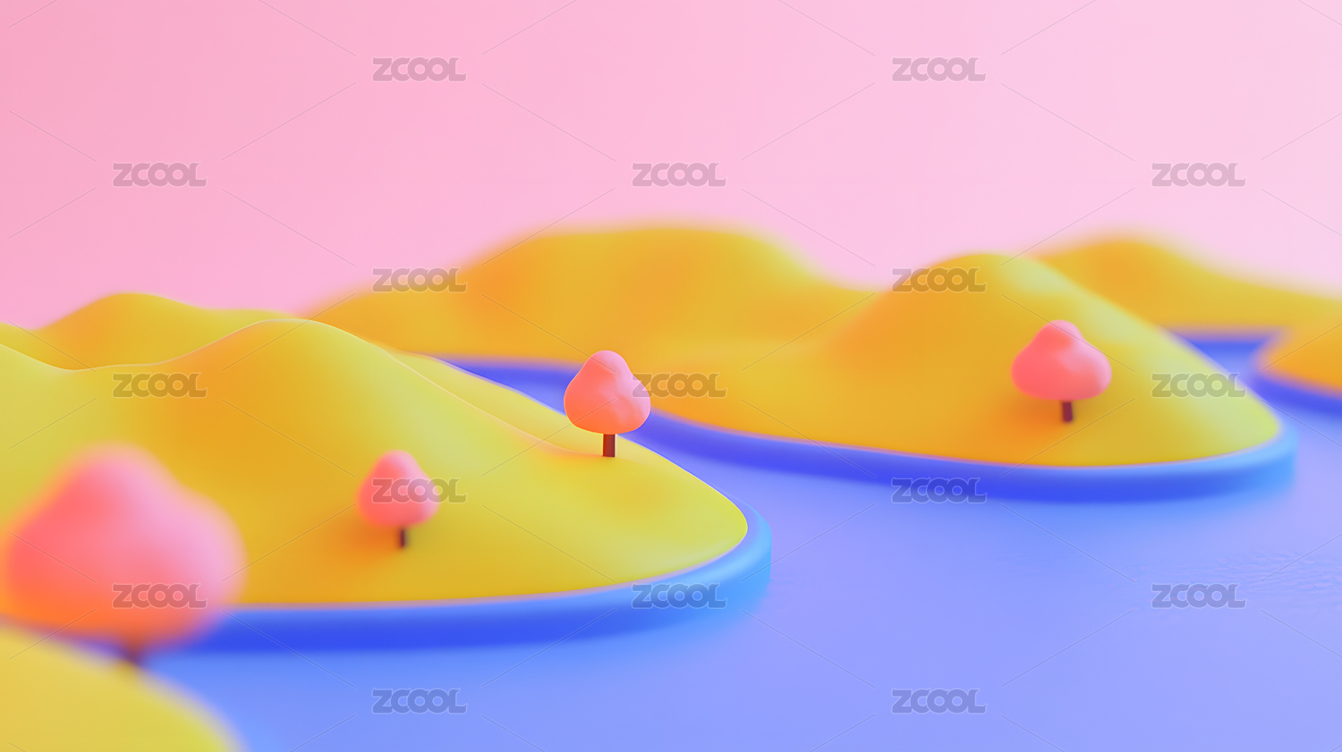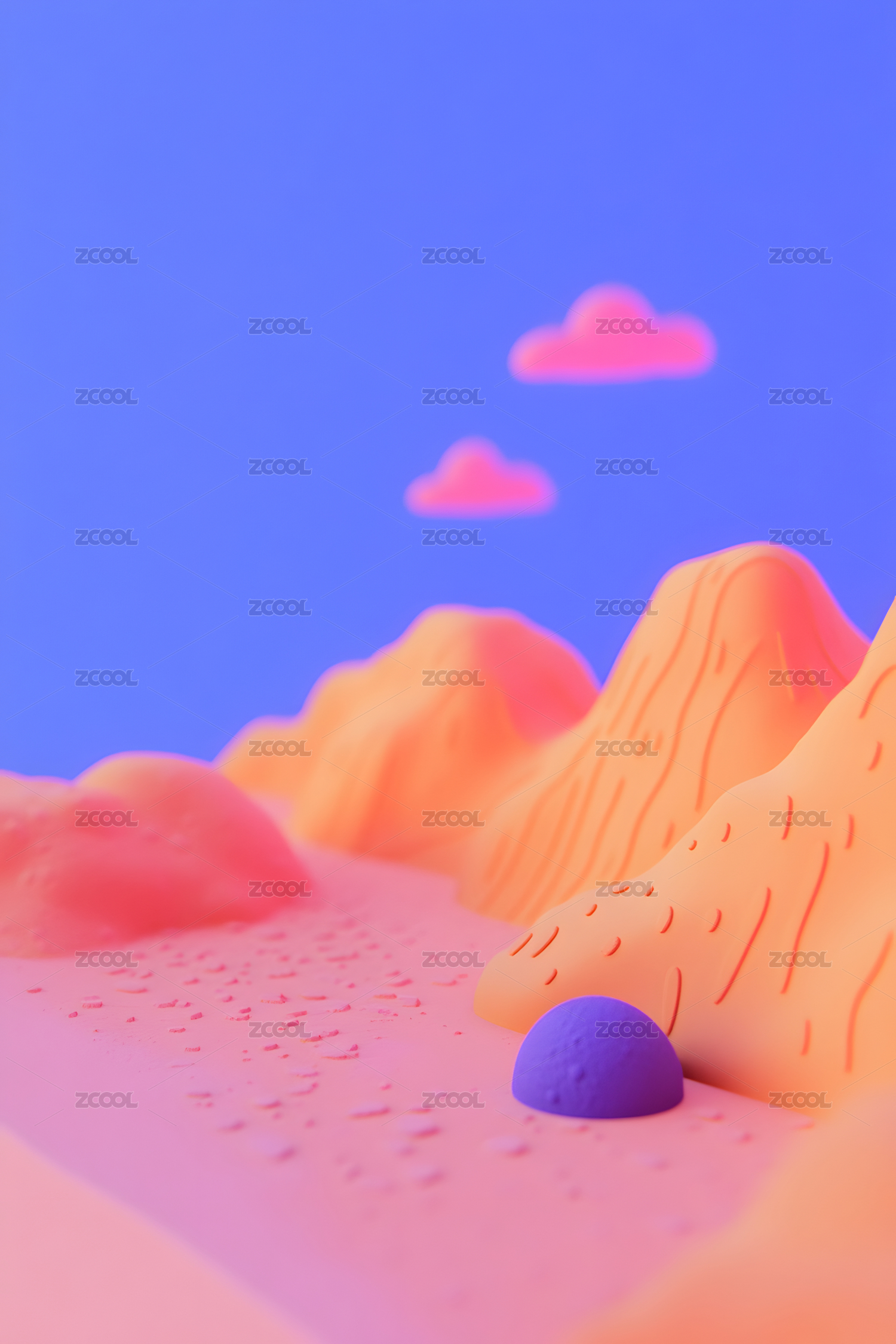 3d,立体,可爱,卡通,温柔,柔和,彩色,风景,山峰,景观