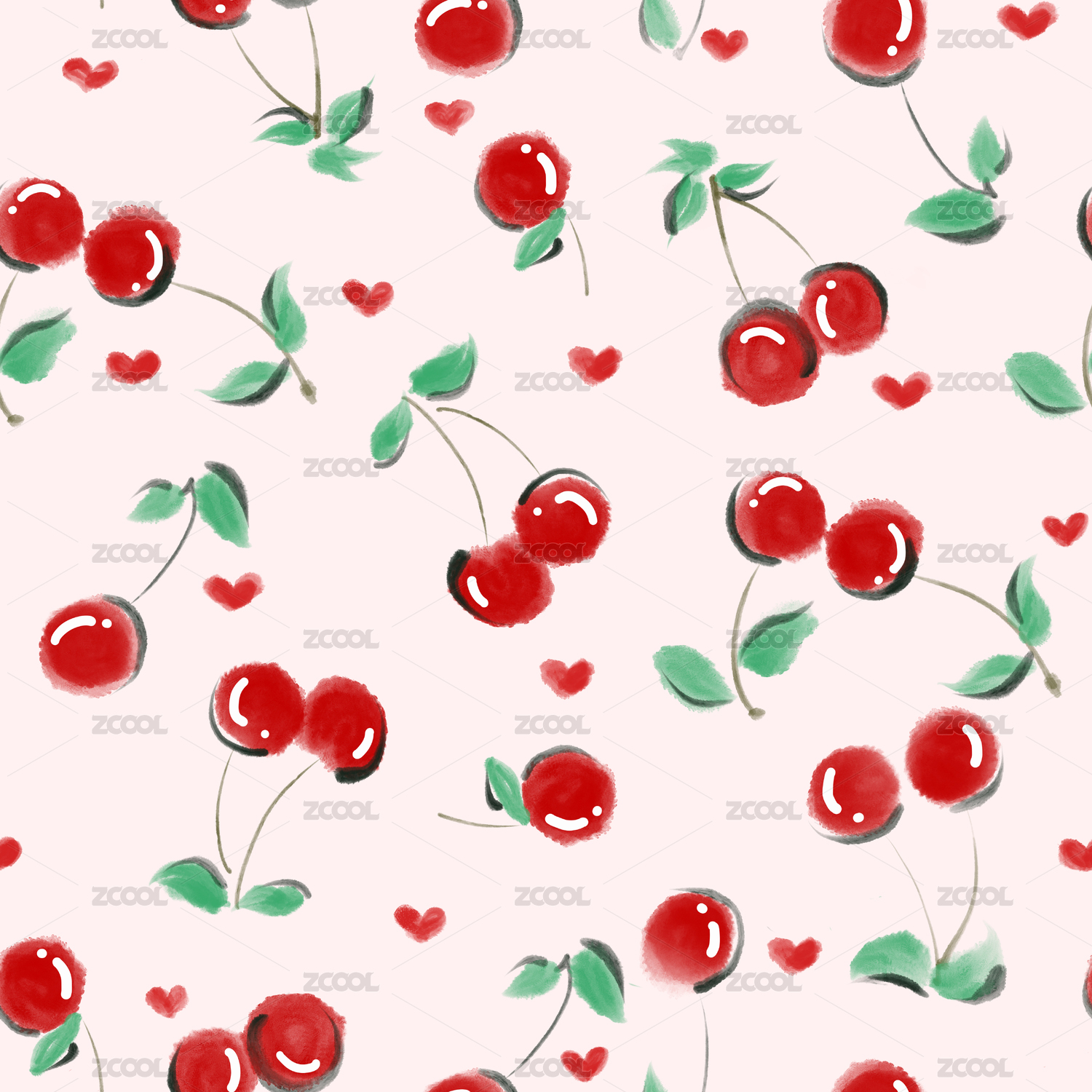 樱桃,浆果,水果,食物,营养,粉色,红色,印花,可爱,苹果