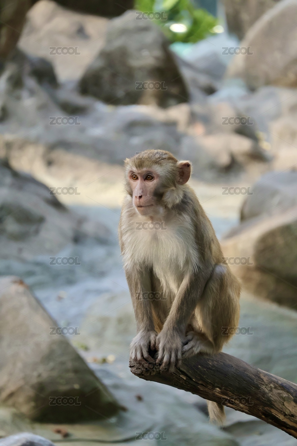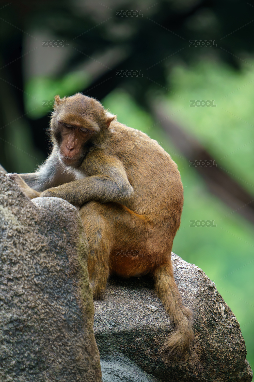 静坐在石头上的猕猴肖像特写