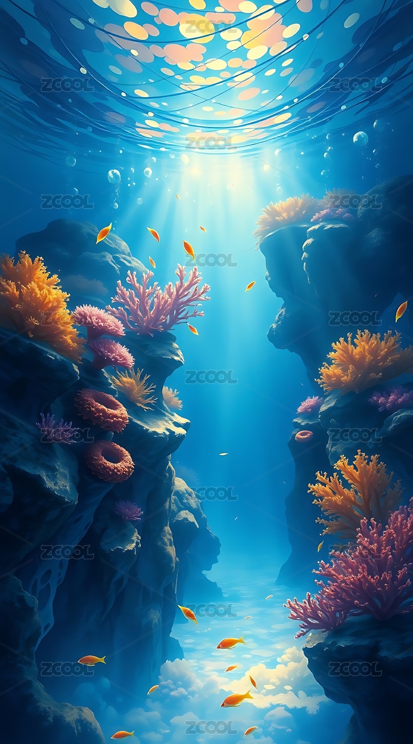 海底,阳光,植物,梦幻,珊瑚,海洋,景色,自然,水下,鱼群