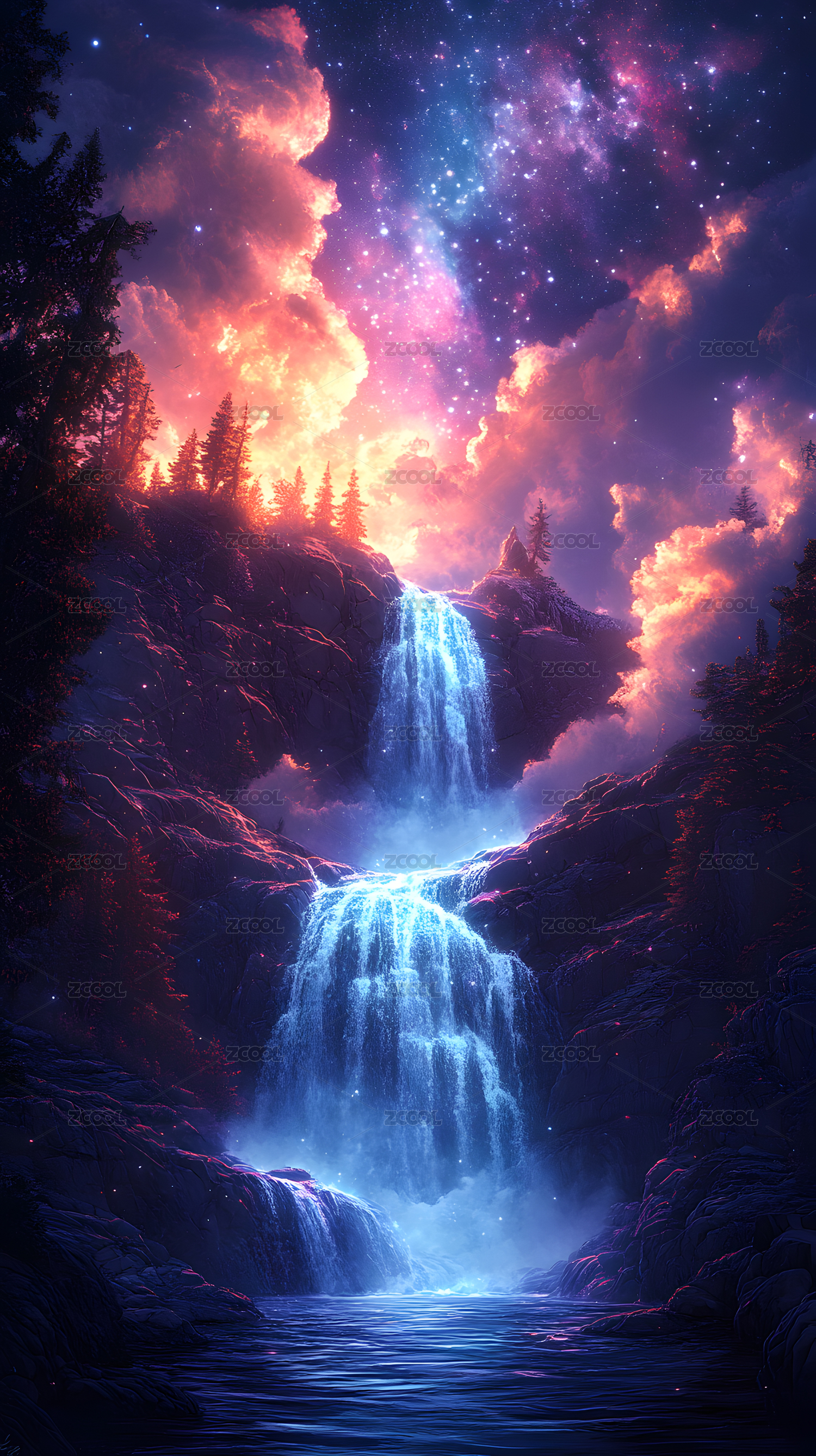 瀑布,山崖,水流,自然,景色,奇观,神秘,天空,云雾,画面