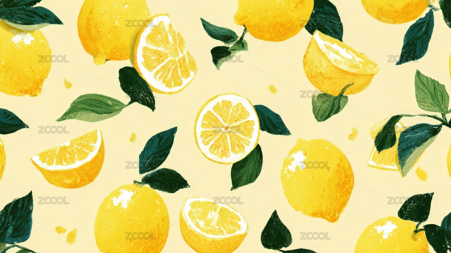 柠檬与绿叶的清新图案