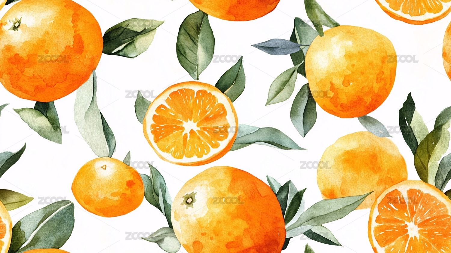 橙子与绿叶的插画图案