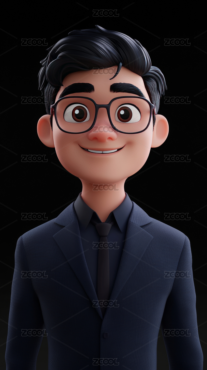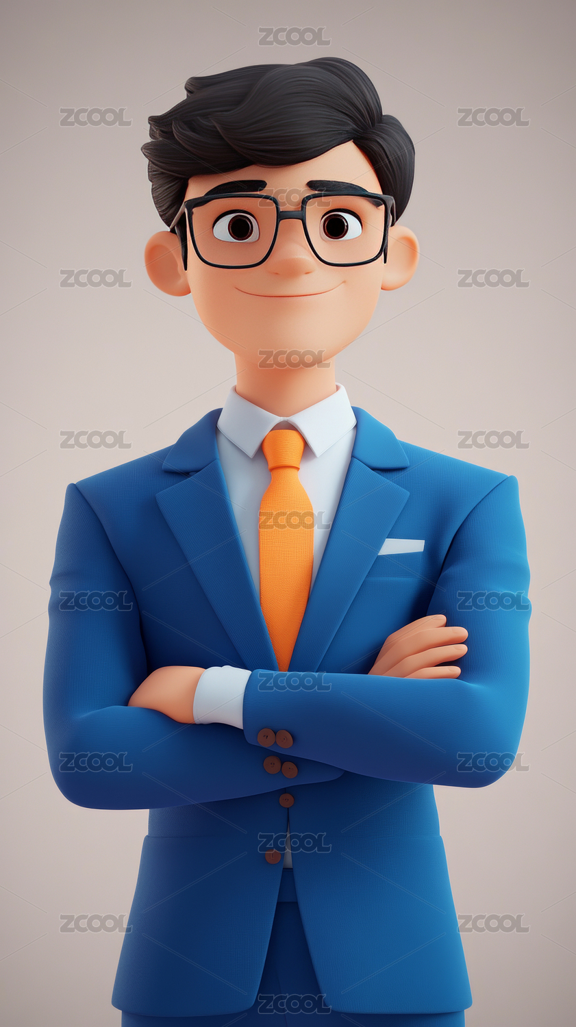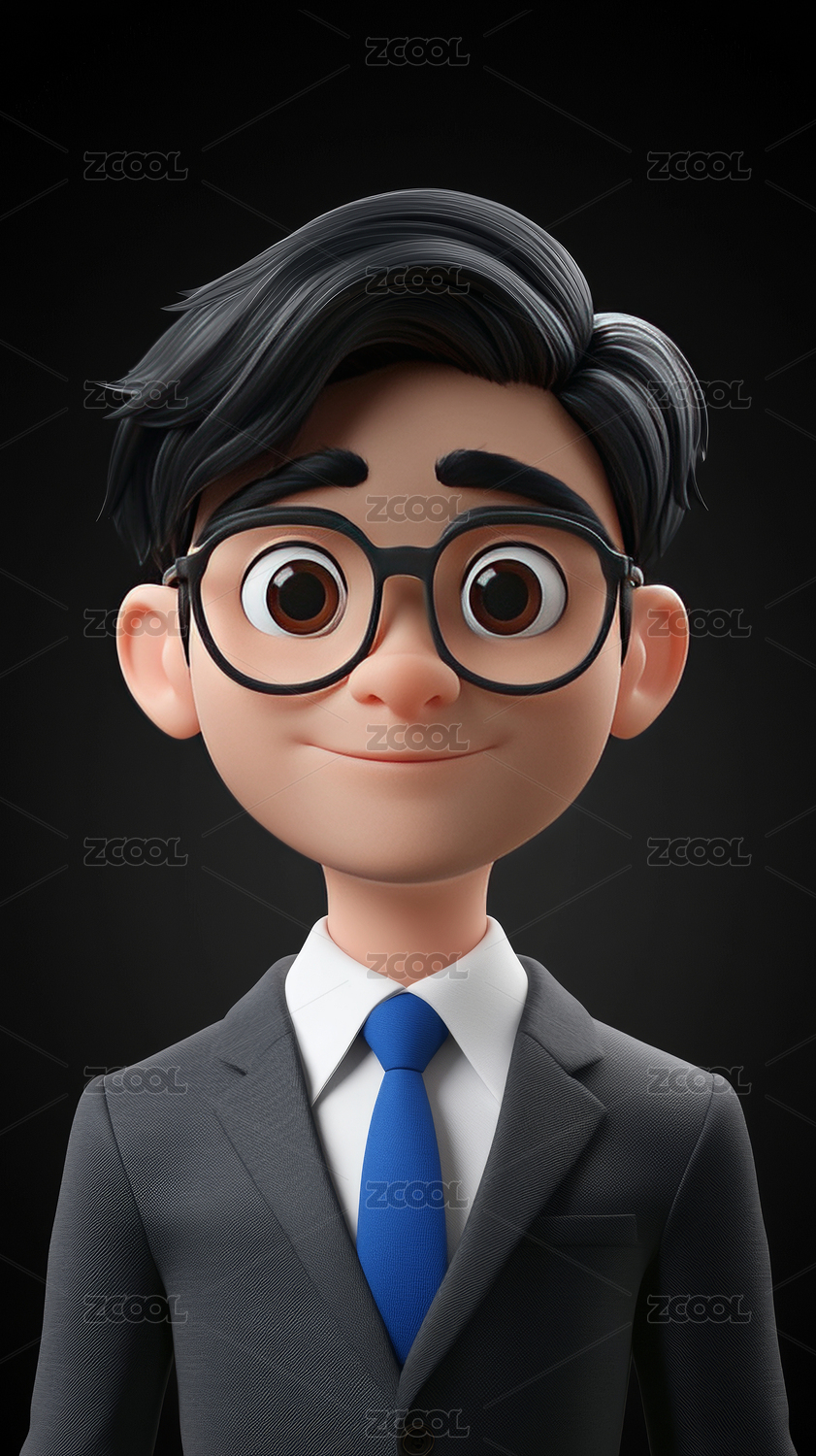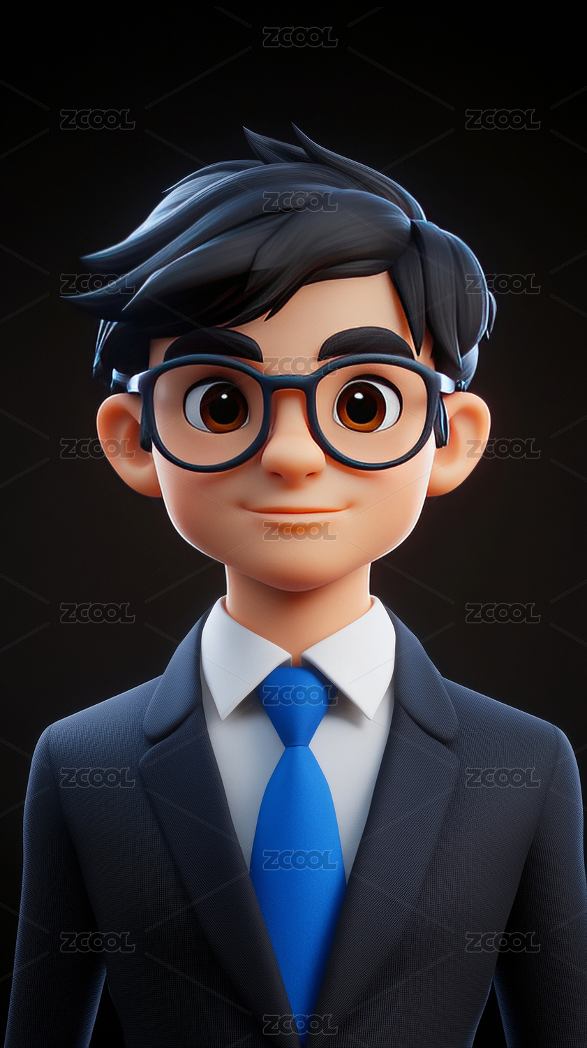 卡通,男孩,自信,西装,眼镜,领带,商务,可爱,3D,人物