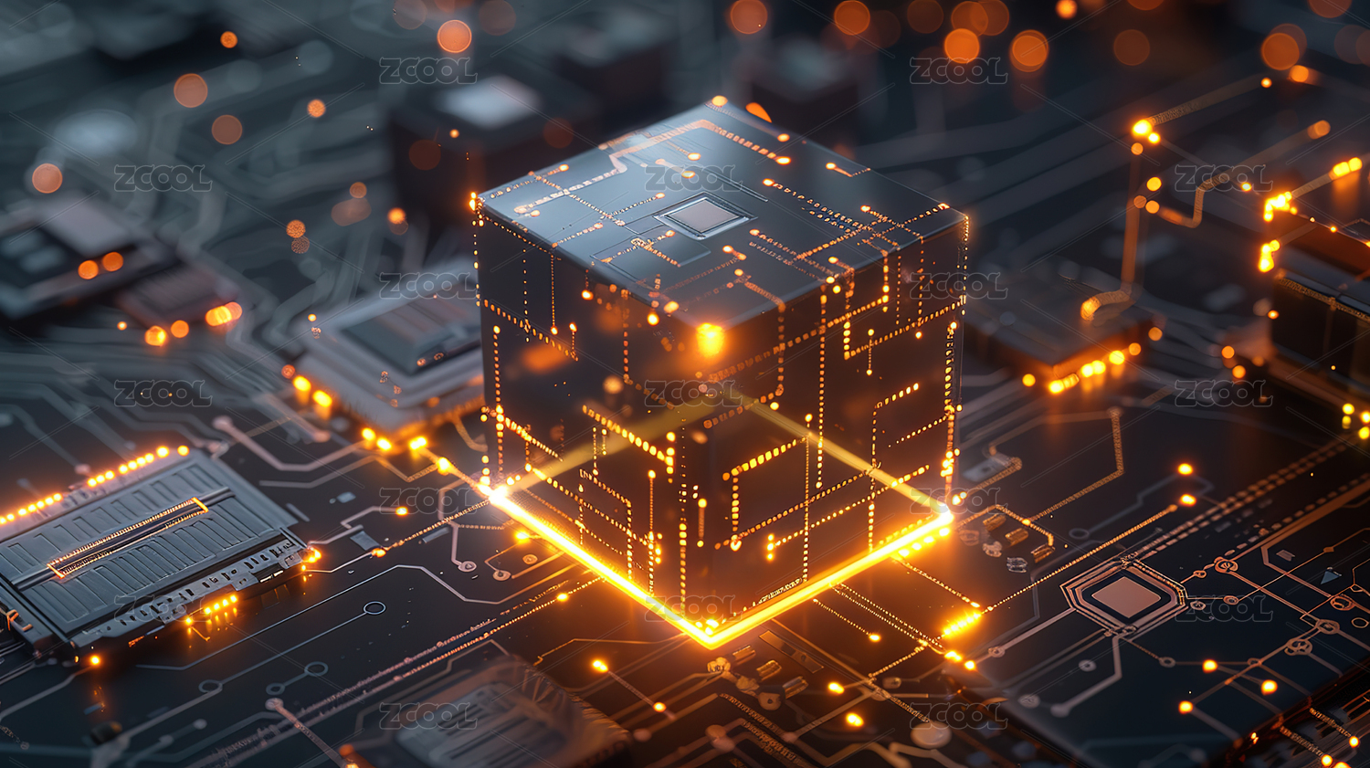 蓝橙色电路立方体