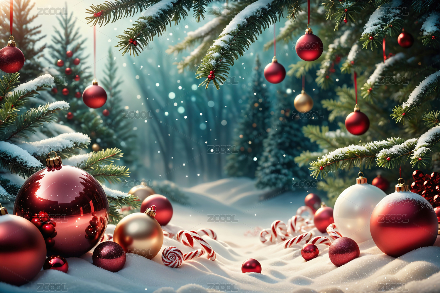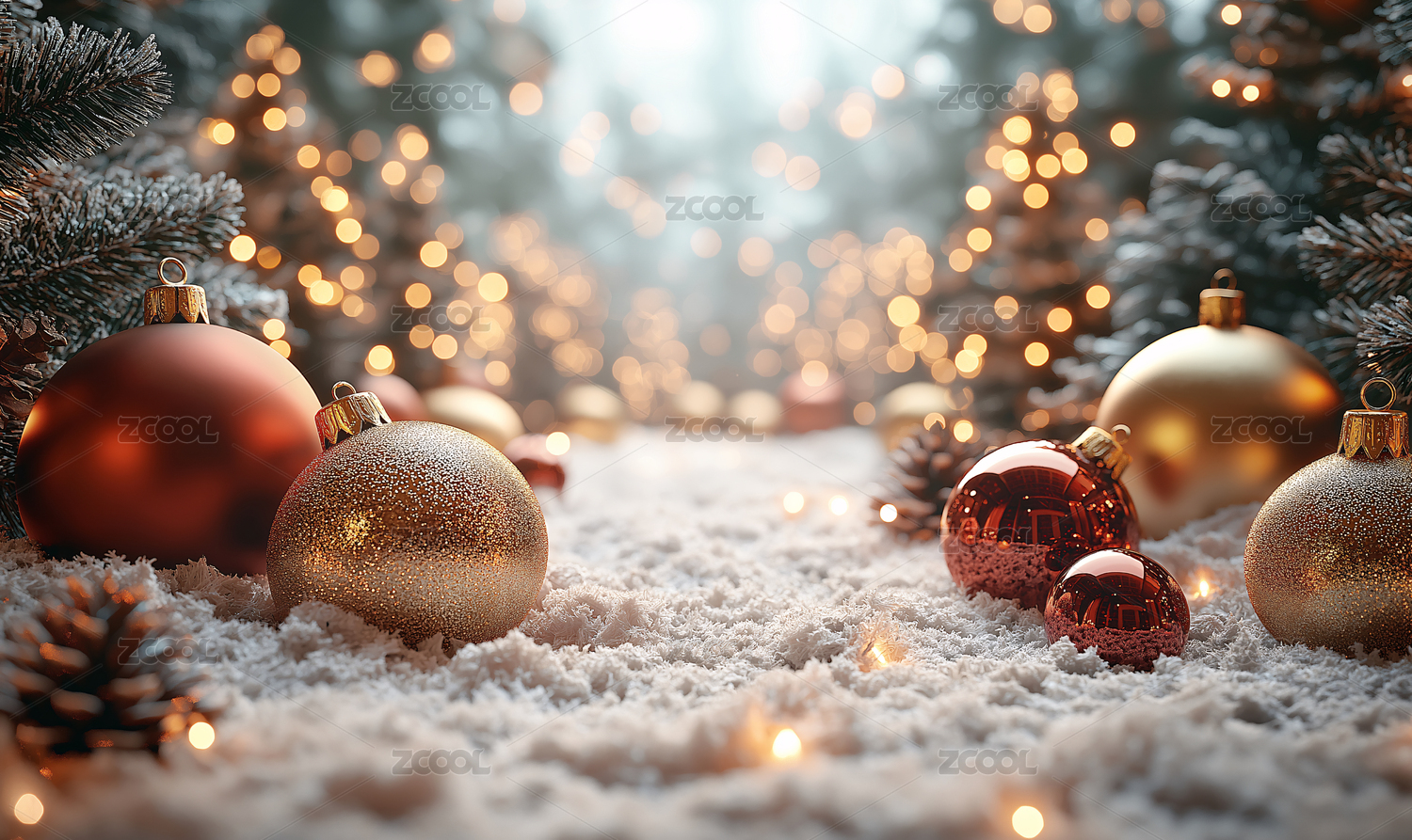雪地圣诞礼物与装饰球