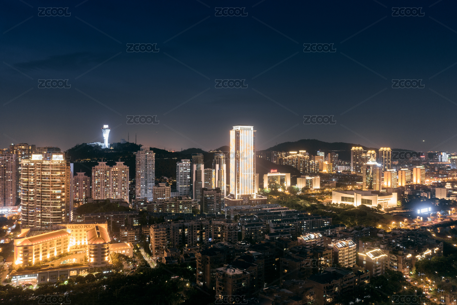 中国广东省深圳福田城市天际线高楼大厦及市民中心夜景