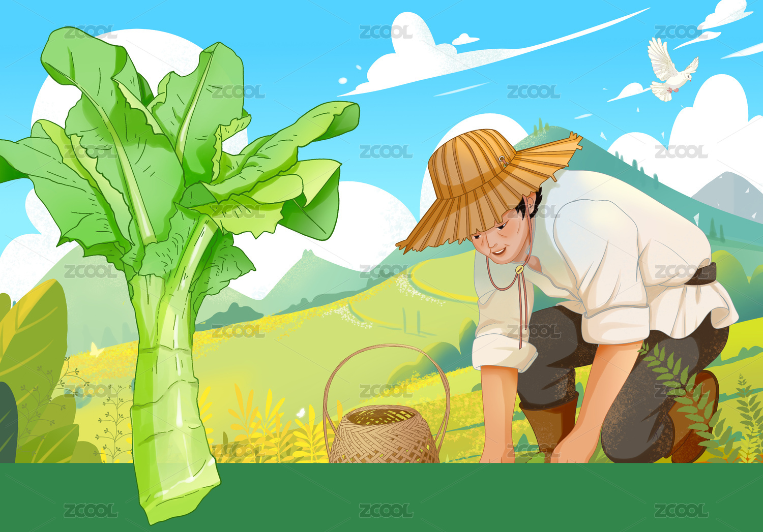 插画,采摘,果农,丰收,收获,竹编,篮子,帽子,水果,果园