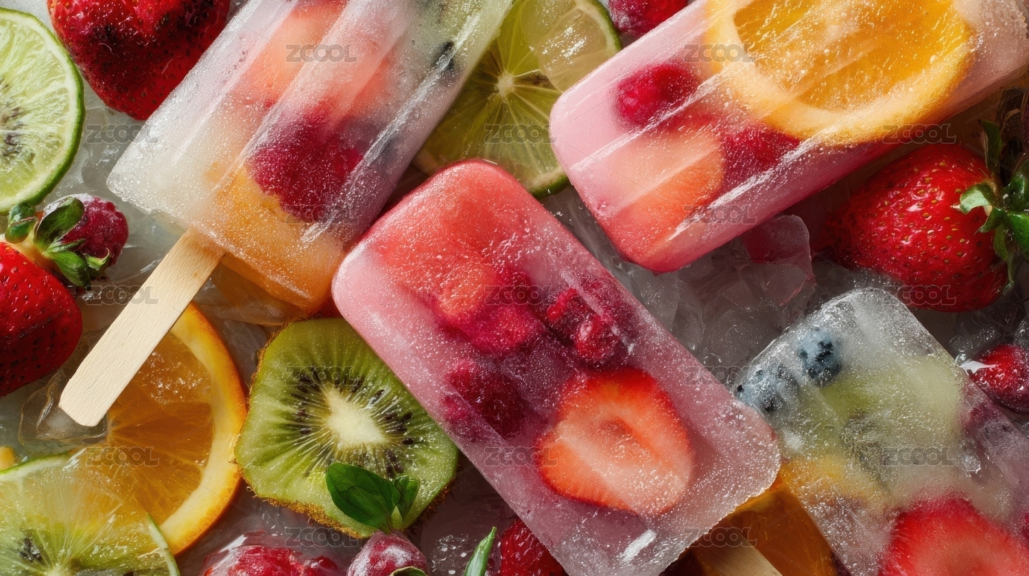 冰棍,柠檬,草莓,冰块,果汁,夏日,甜品,美食,清爽,冰凉