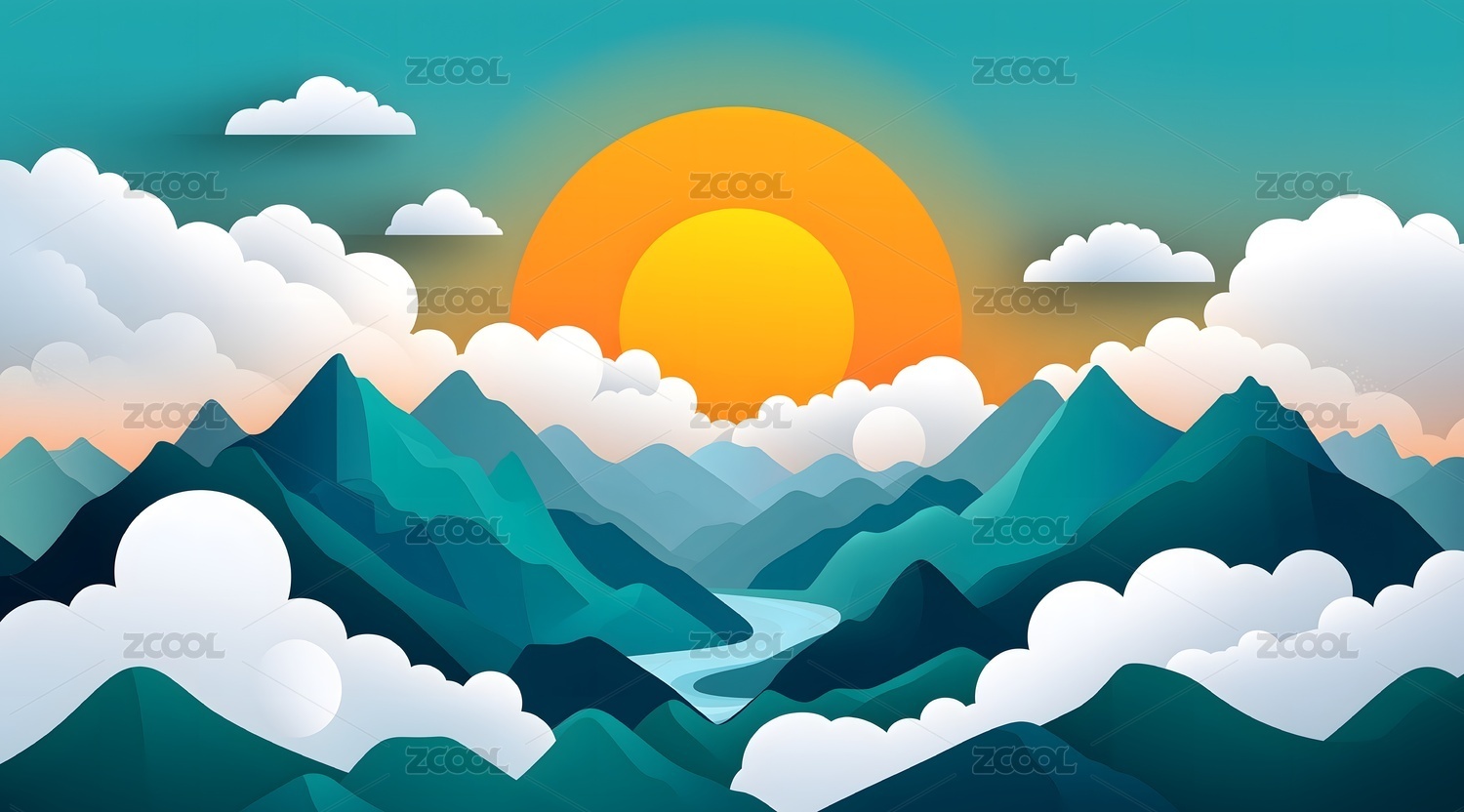 雪山草原插画风格素材