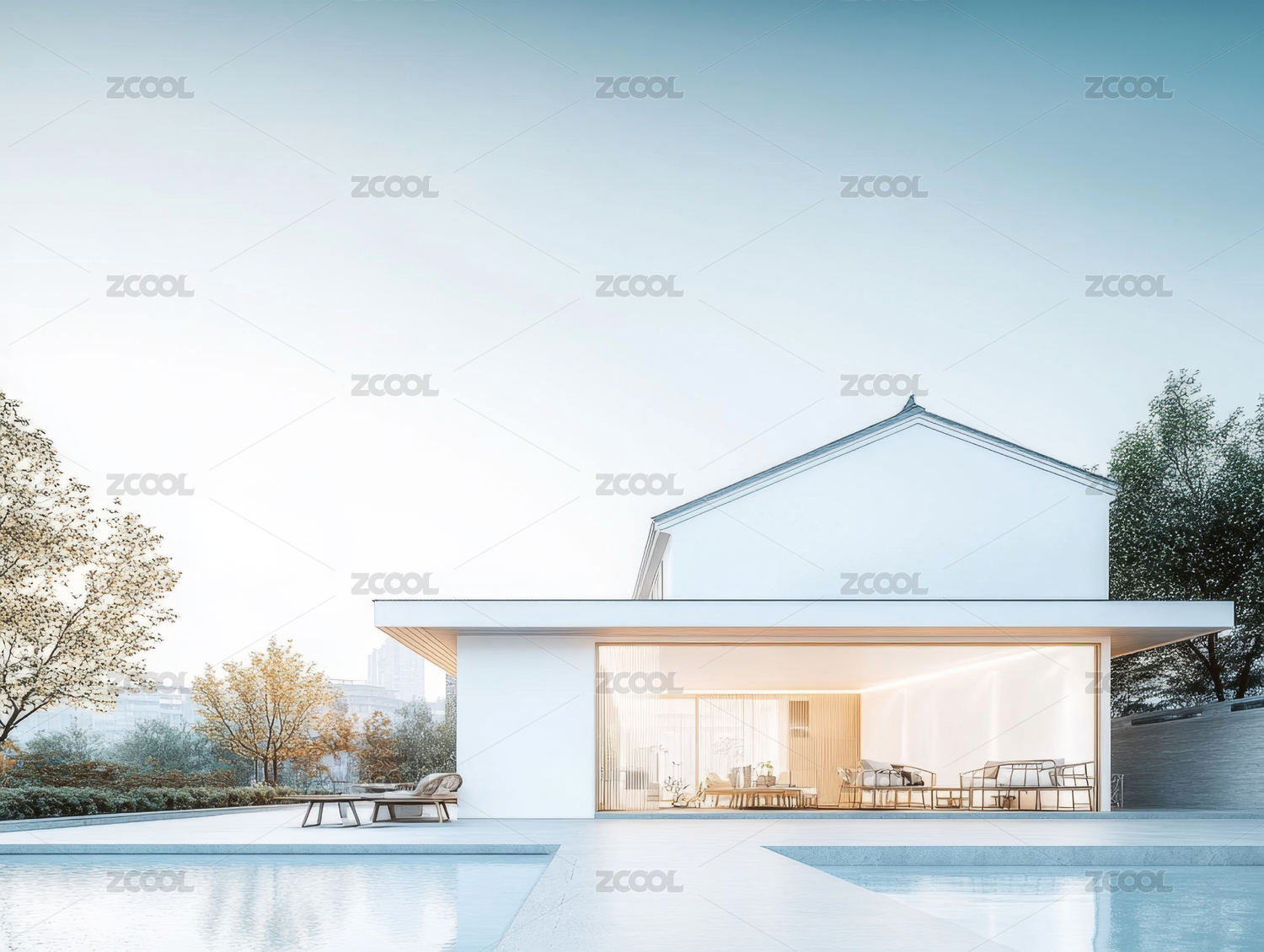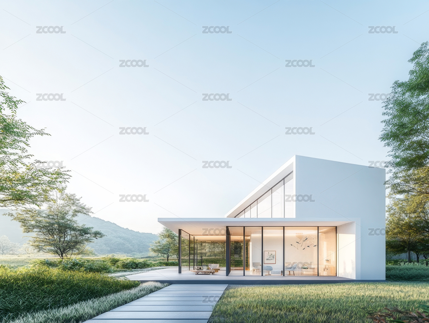 现代,建筑,别墅,自然,景观,山脉,树木,日落,室内,设计