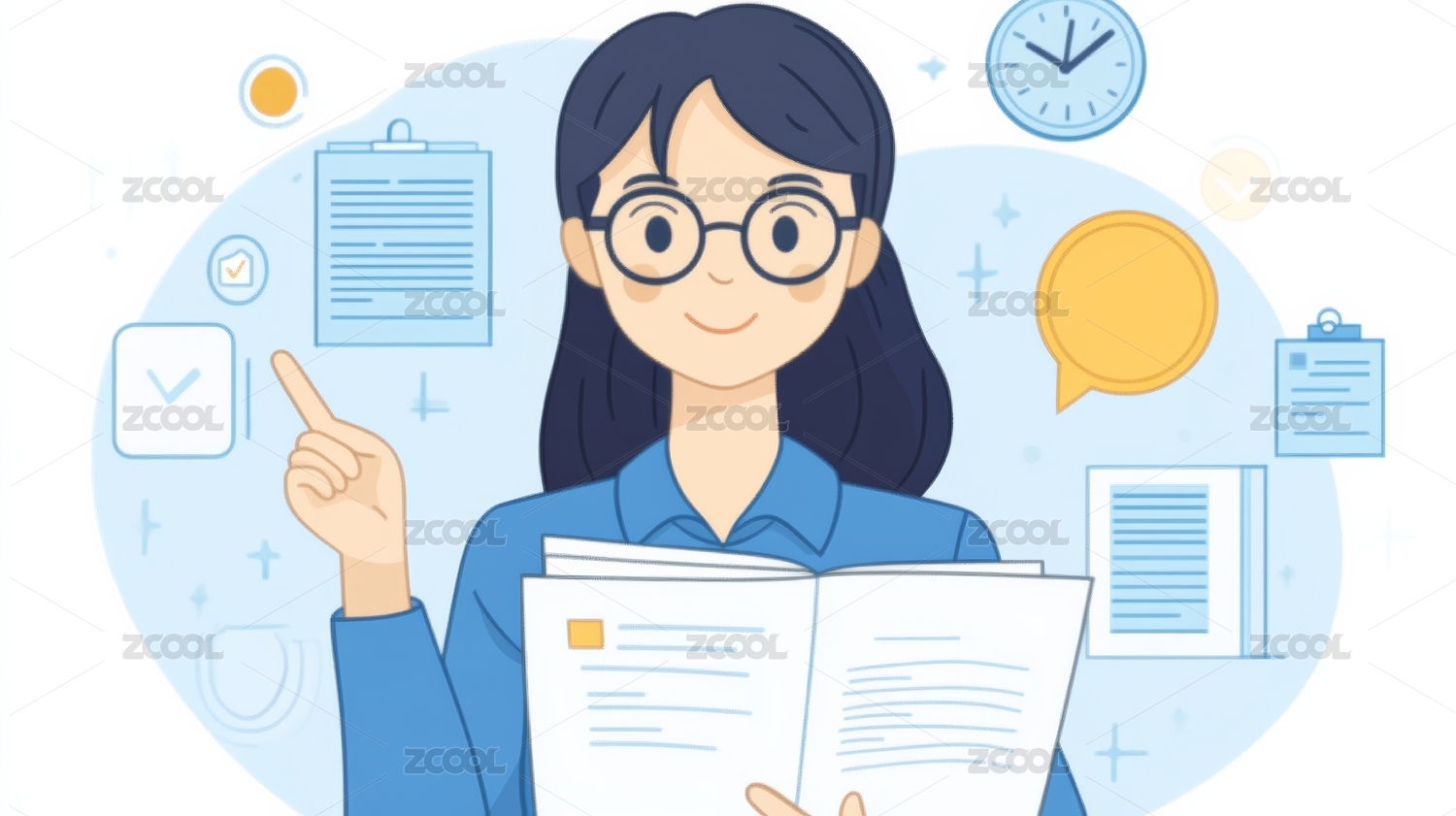 卡通可爱拿着书的商务人士
