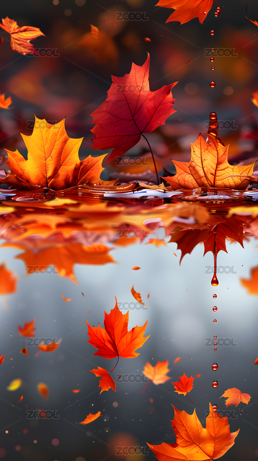 立体,3D,创意,现代,抽象,背景,壁纸,灵感,水面,秋叶