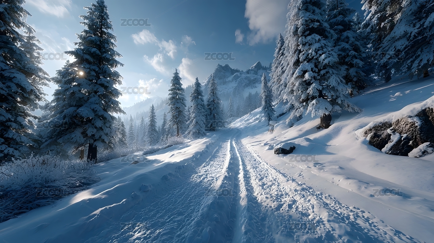 梦幻,雪山,松树,冬季,风景,自然,唯美,阳光,雪景,白雪