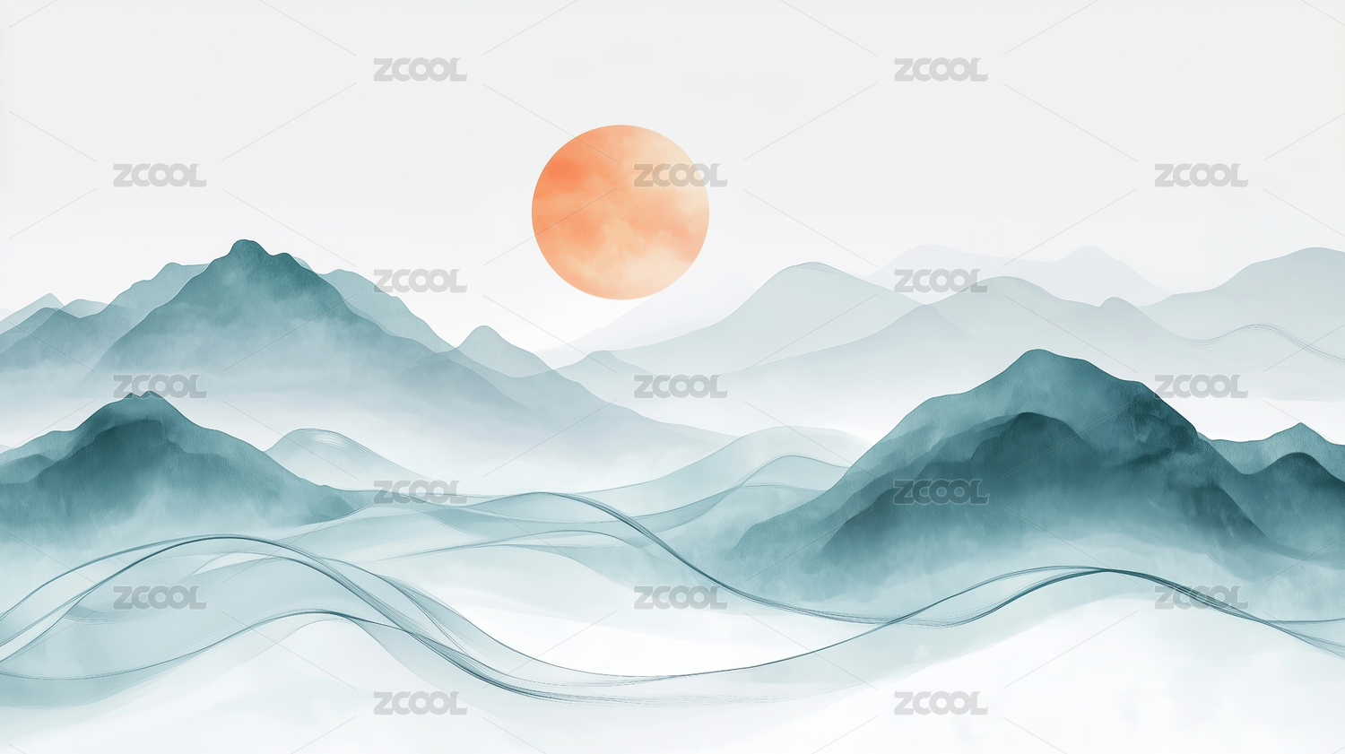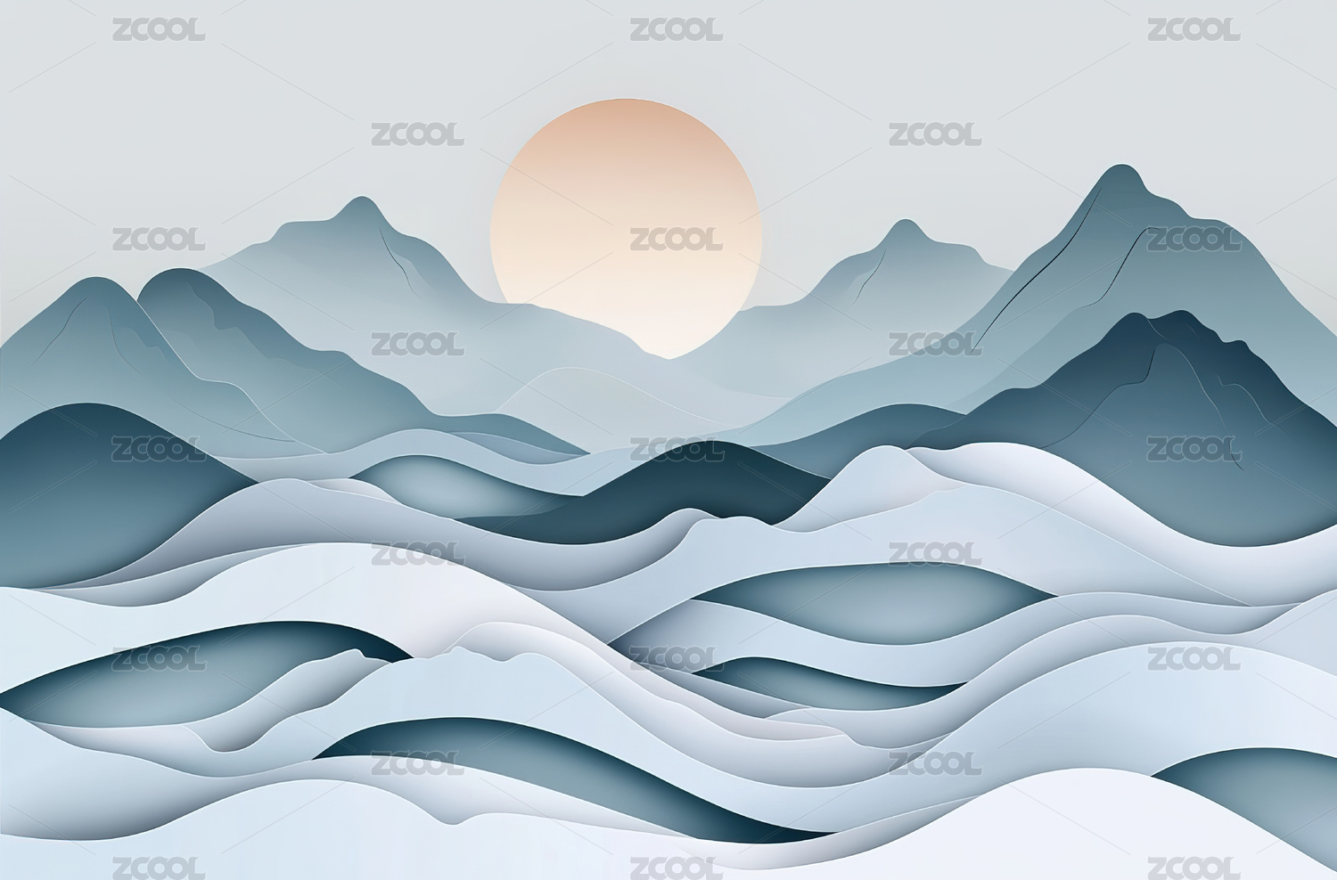 艺术, 自然,宁静, 山峰, 蓝色, 抽象, 水彩, 背景, 设计, 金色