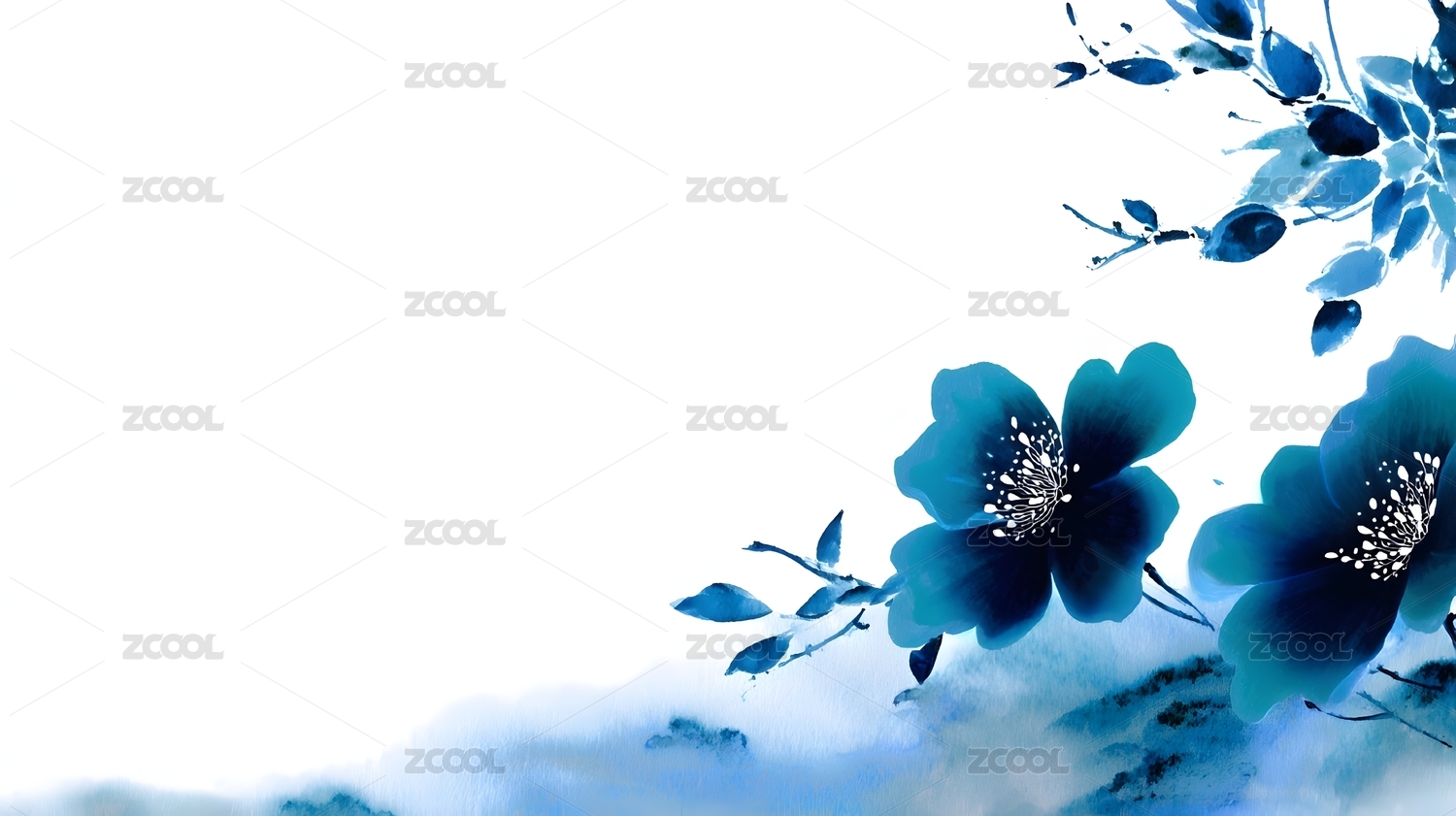 水墨写意蓝花
