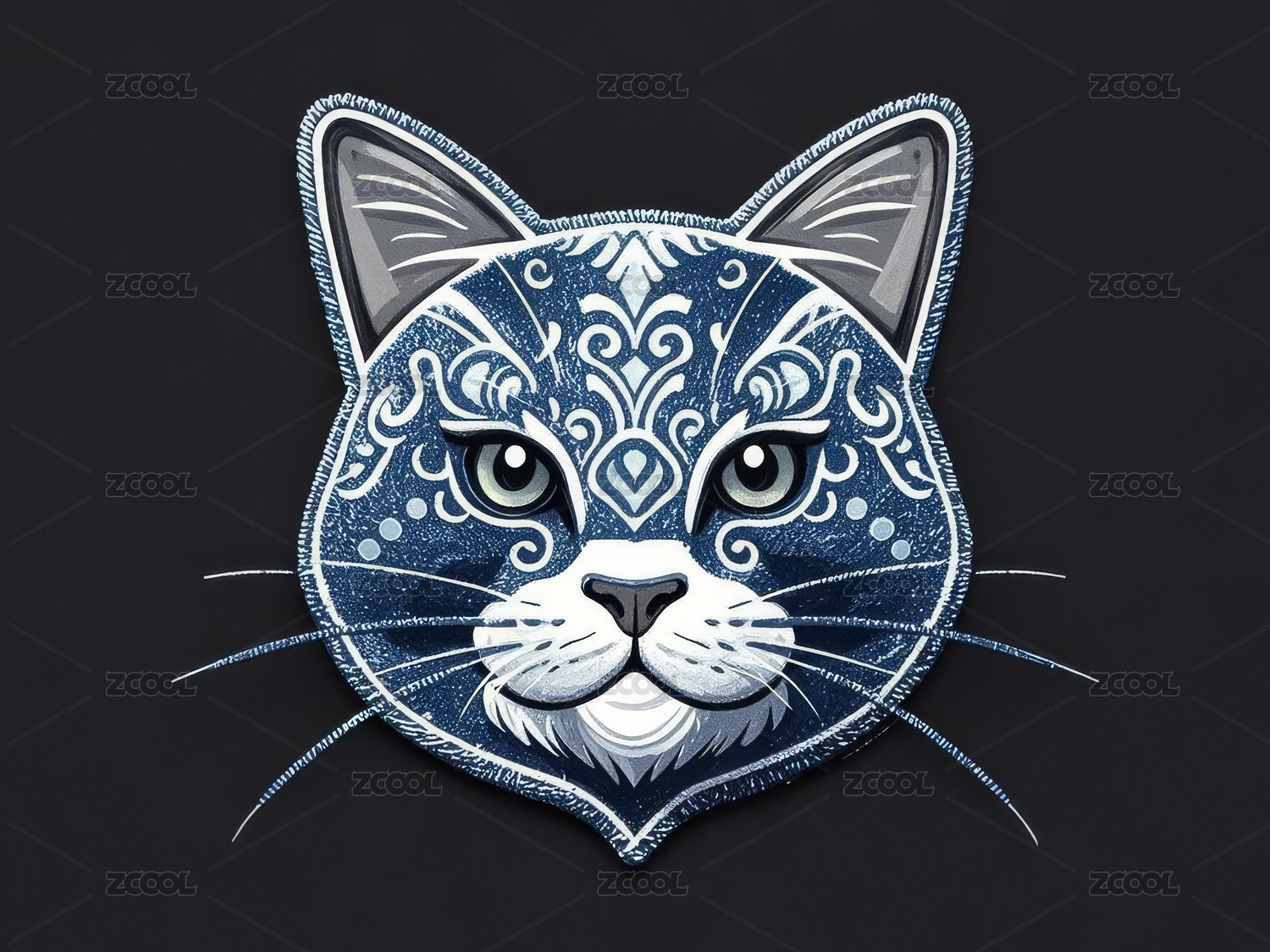 DXCZ202503,牛仔布,布贴,补丁贴,布艺,猫头像,提花,装饰