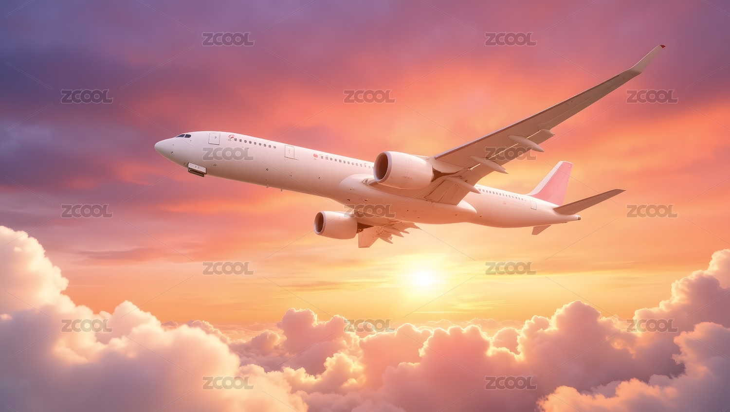 飞机云层日落飞行