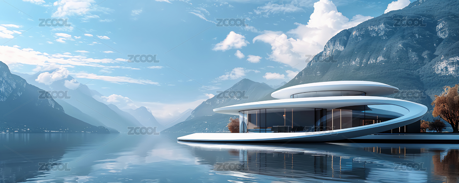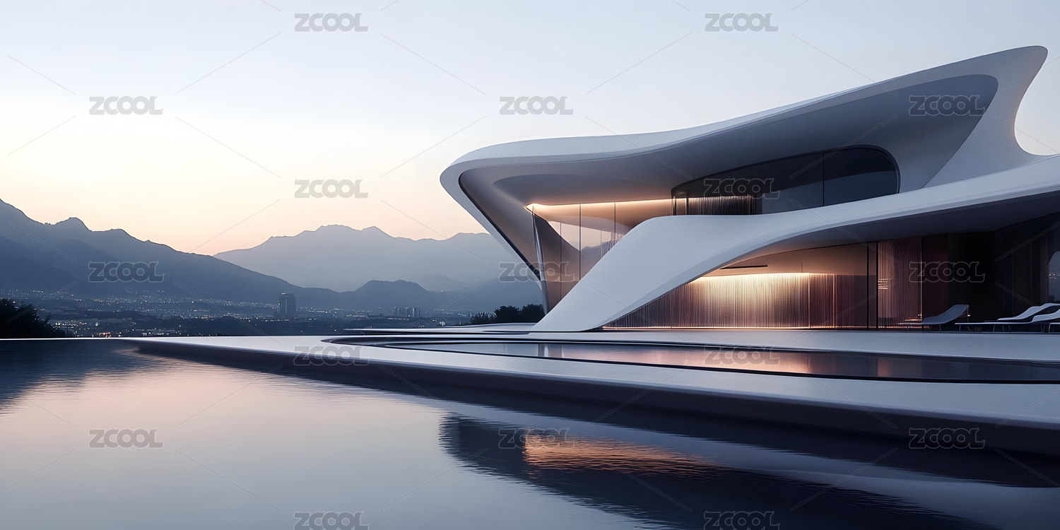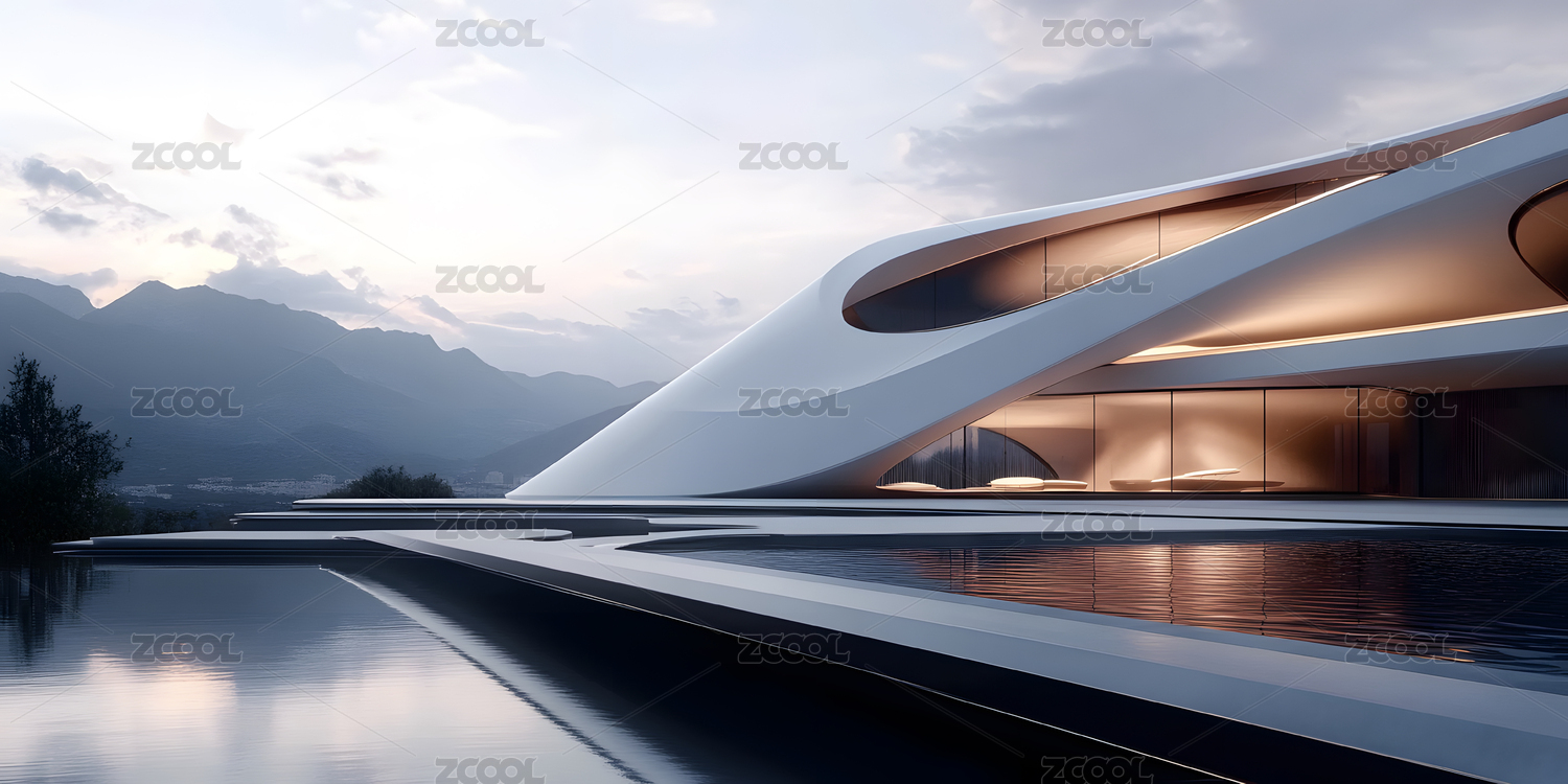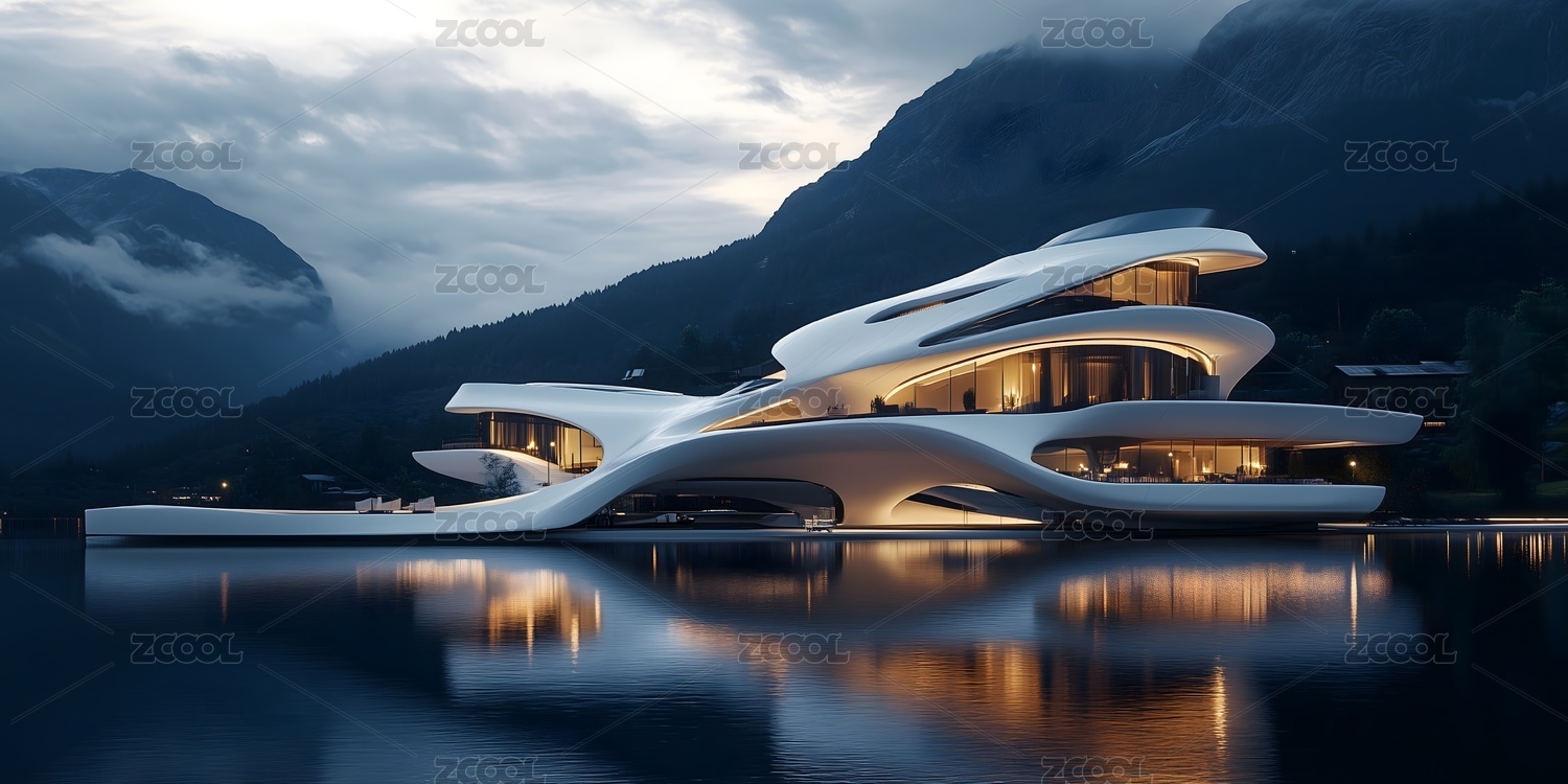 线条,未来,设计,景色,湖泊,建筑,房屋,灯光,水景,山脉