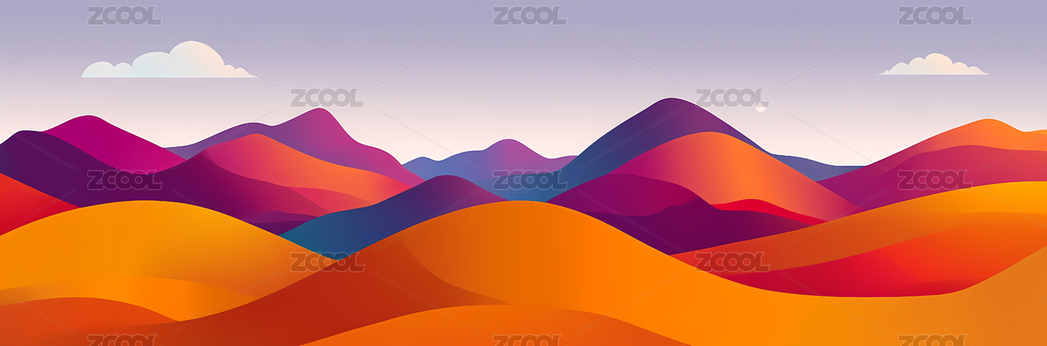 沙漠,卡通,插画,渐变,山丘,天空,背景,艺术,创意,自然