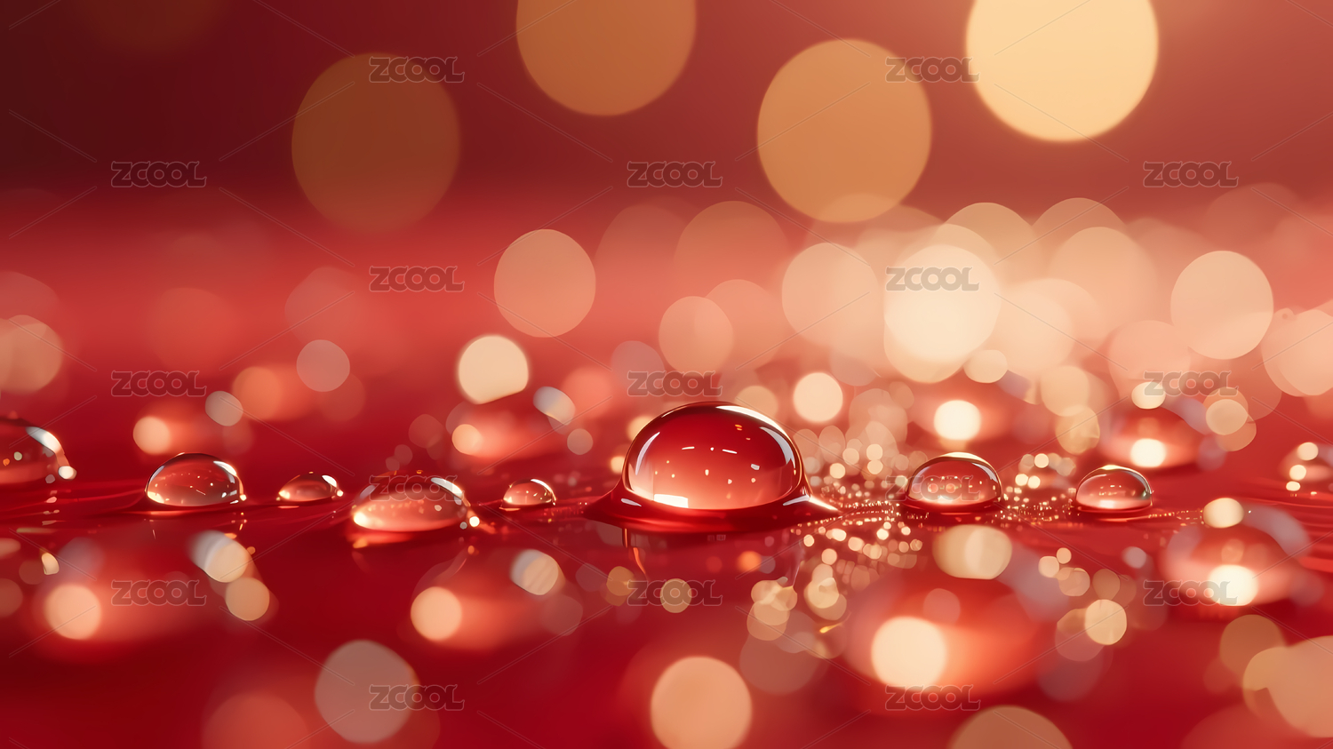明亮的背景,透明水滴在光滑的彩色表面上,
