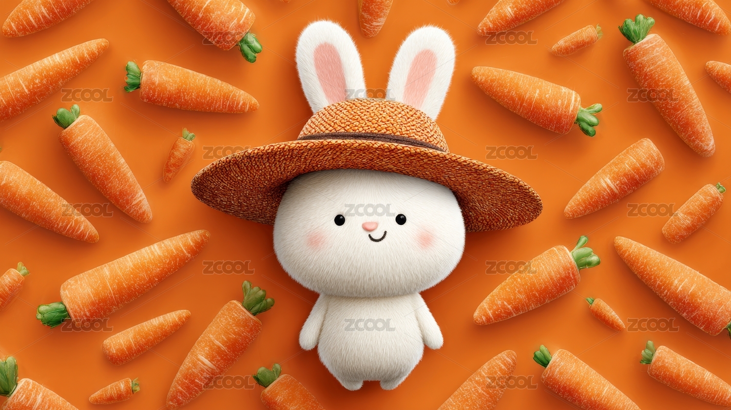 戴草帽兔兔怀抱胡萝卜