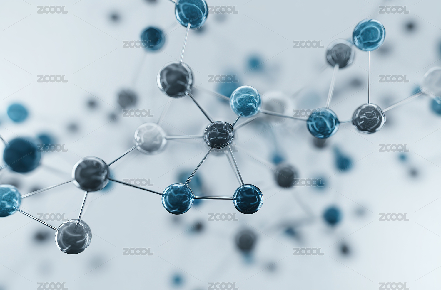 蓝色背景下分子结构的特写镜头