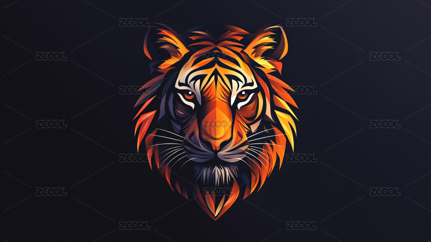 橙黑配色的虎头标志设计