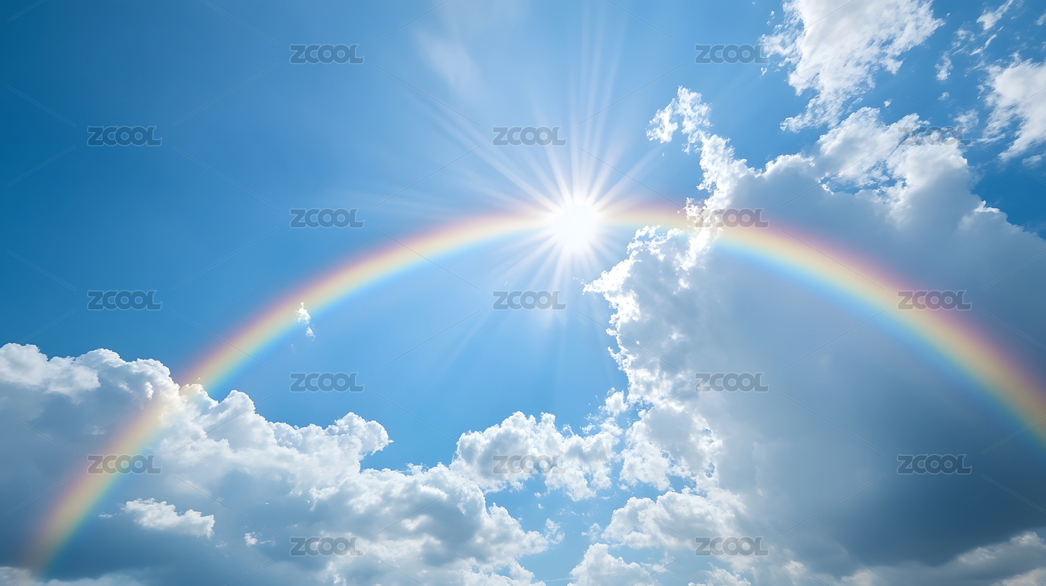 彩虹,天空,云朵,梦幻,星光,柔和,粉色,蓝色,清新,插画