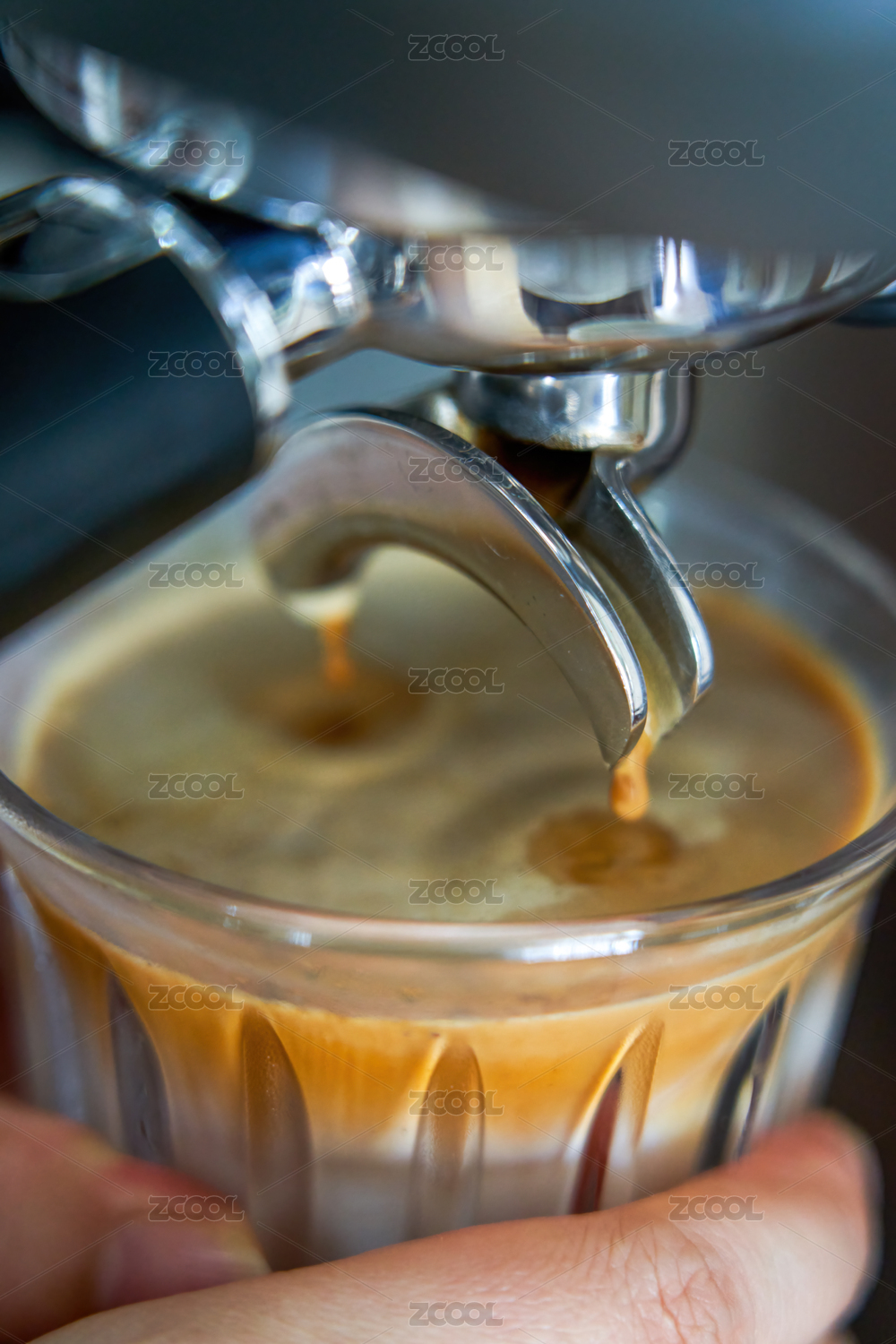 玻璃杯装咖啡倒液带泡沫气泡特写素材