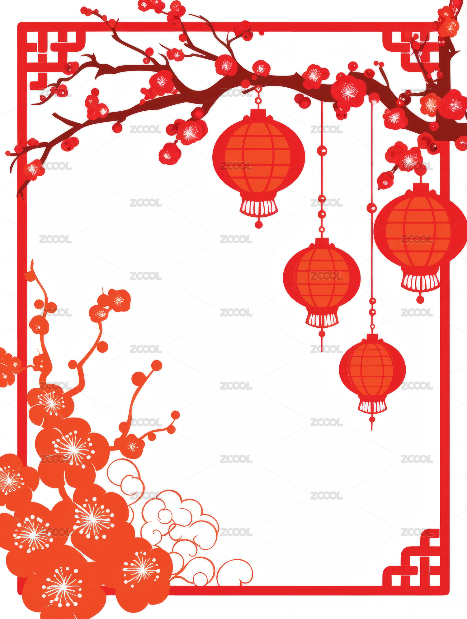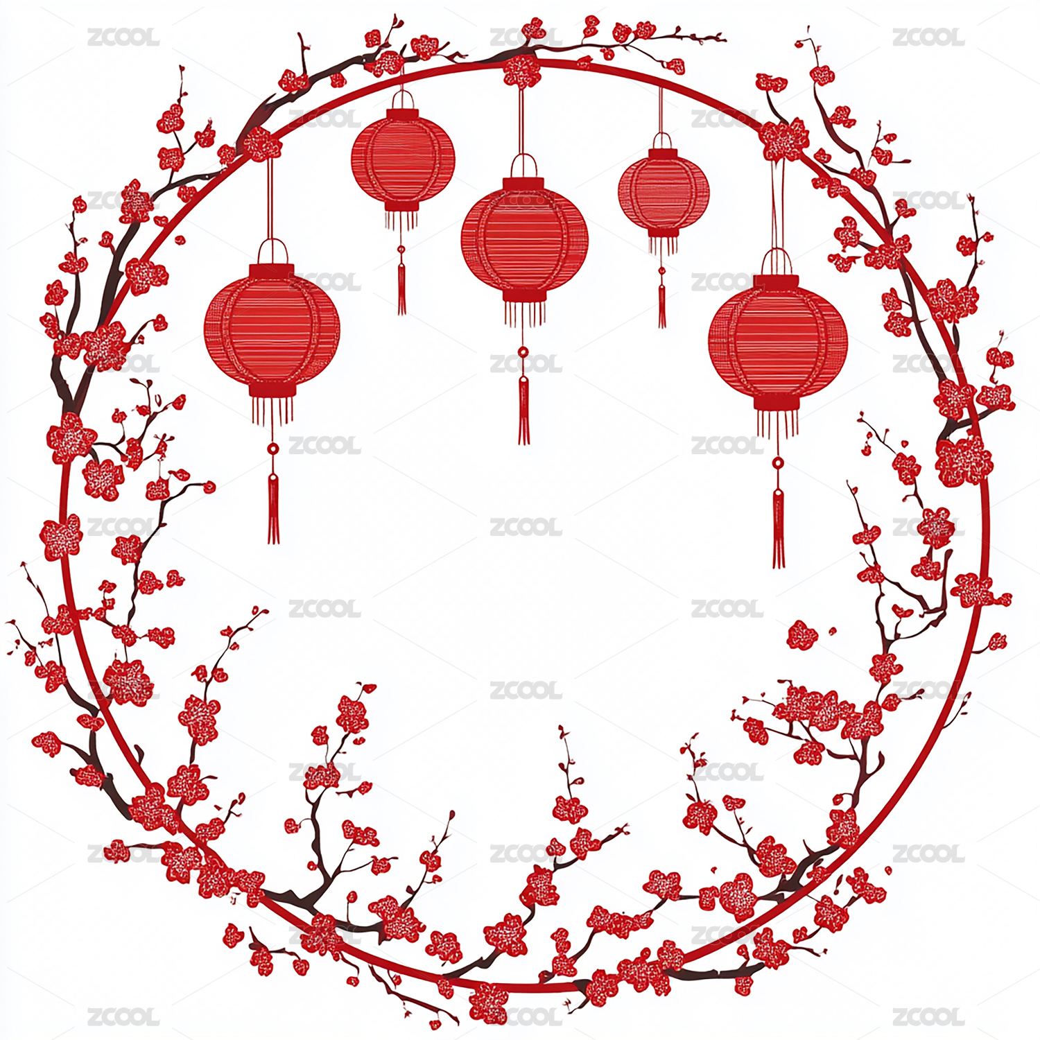 红梅枝,梅花,悬挂,传统,元素,灯笼,圆构,节庆,中秋,节日