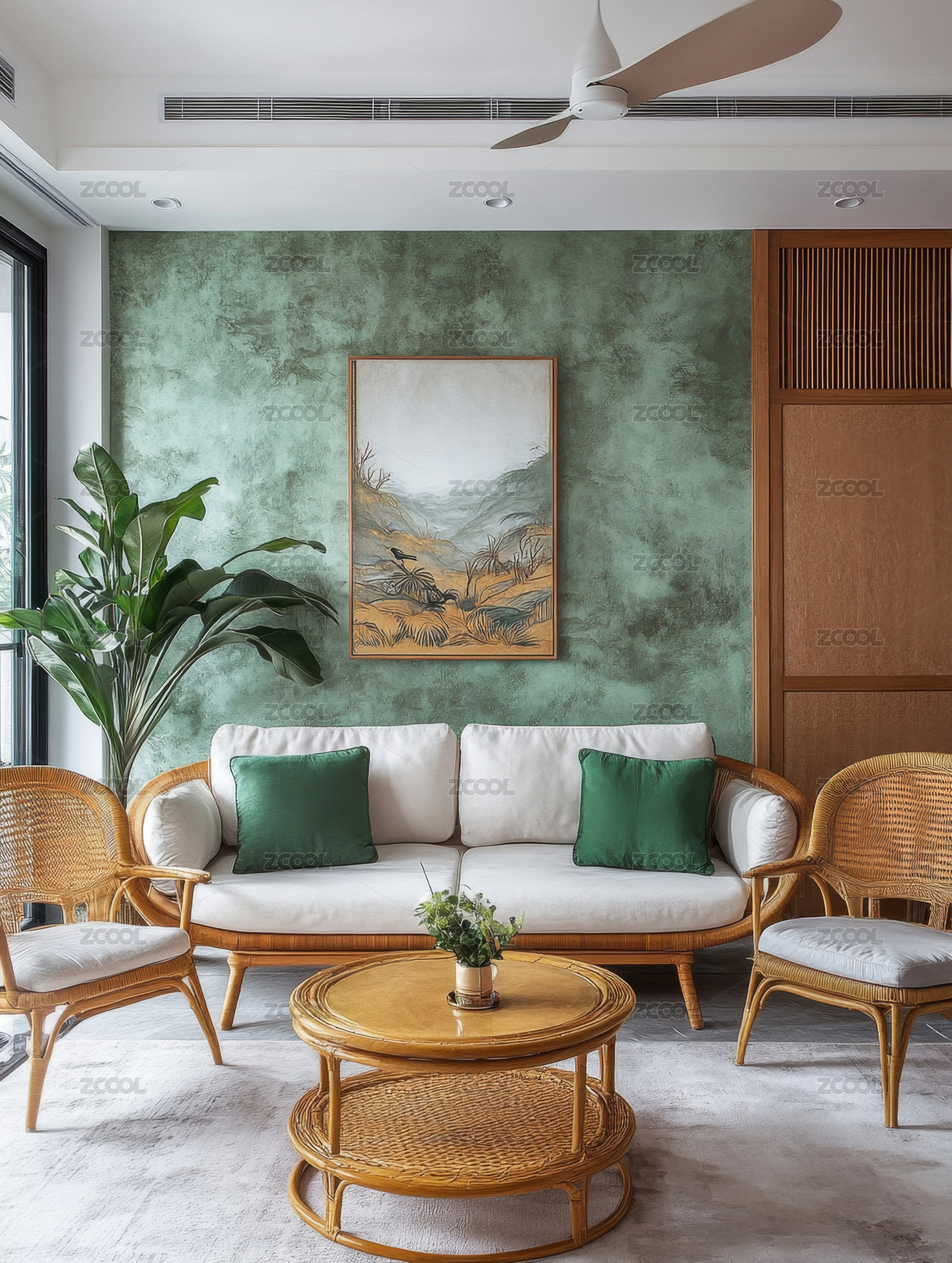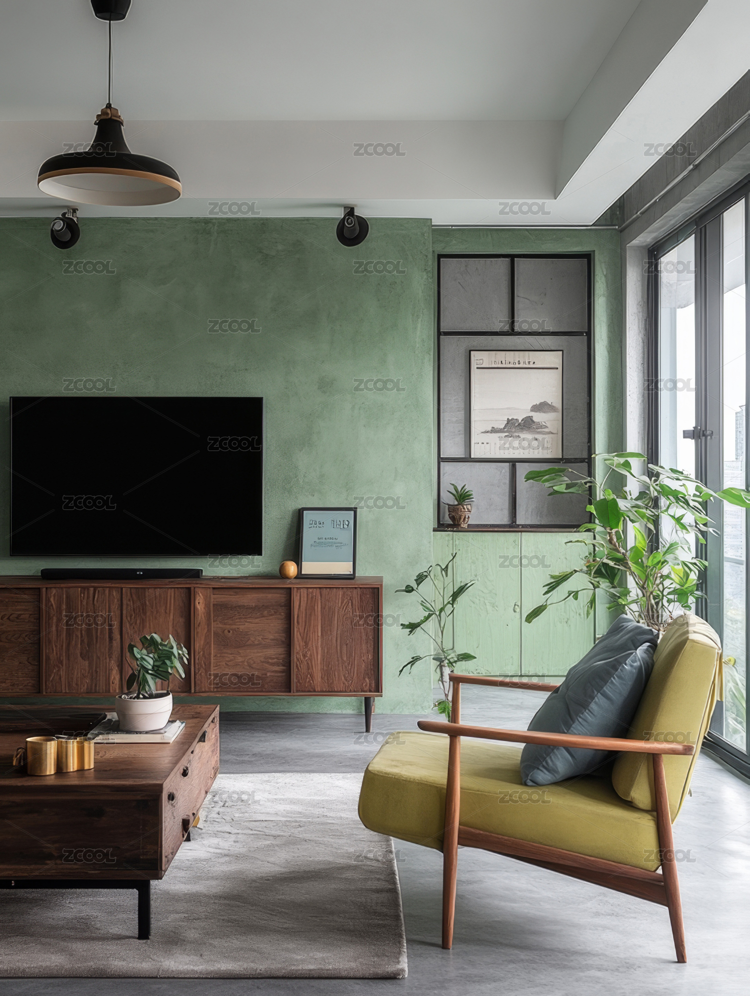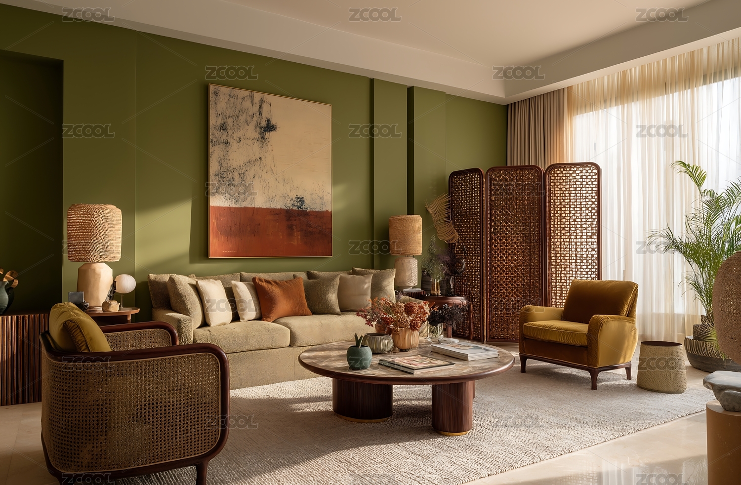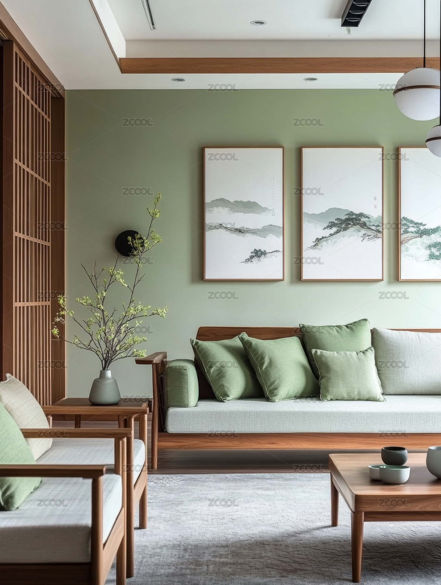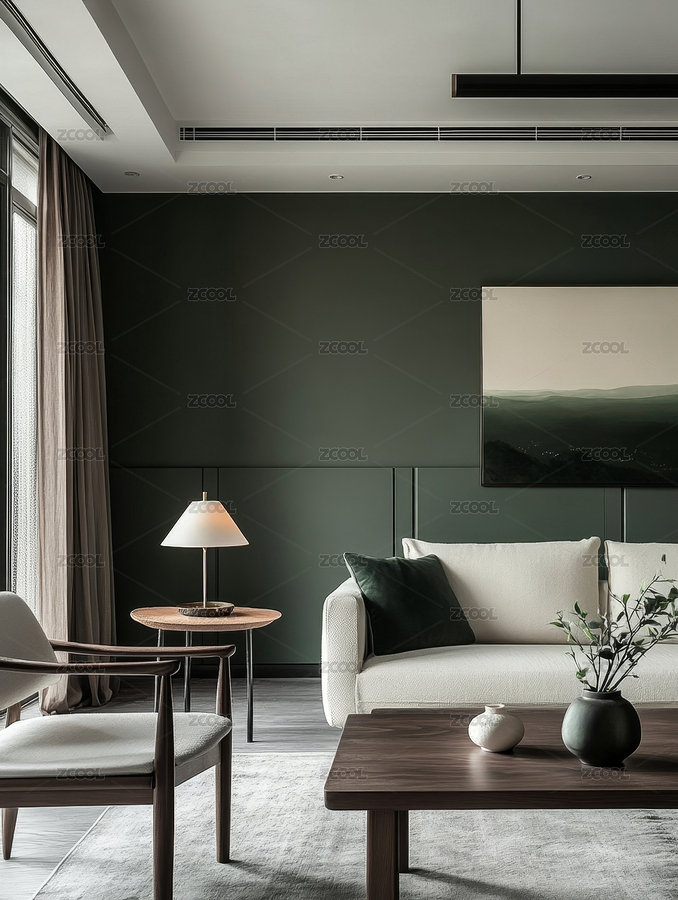 客厅,现代,简约,沙发,茶几,台灯,绿色,墙壁,装饰画,室内