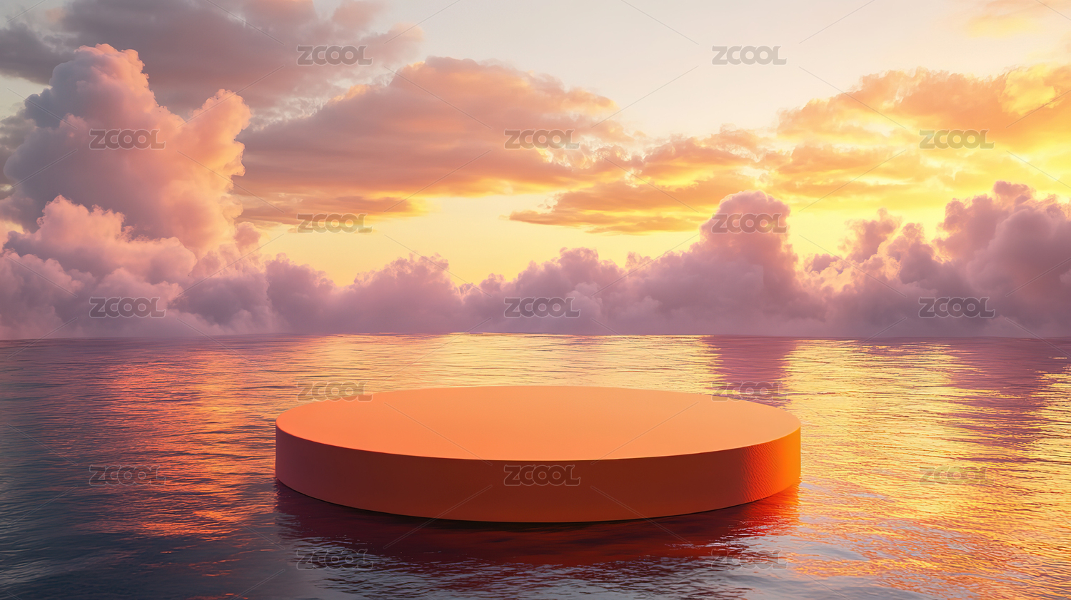 日落,海景,展示台,圆形,水面,金色,蓝色,自然,背景