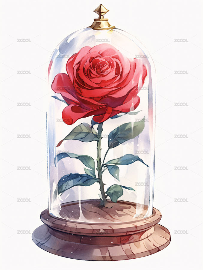 植物,优雅,插画,唯美,精致,梦幻,玫瑰,花朵,创作,红