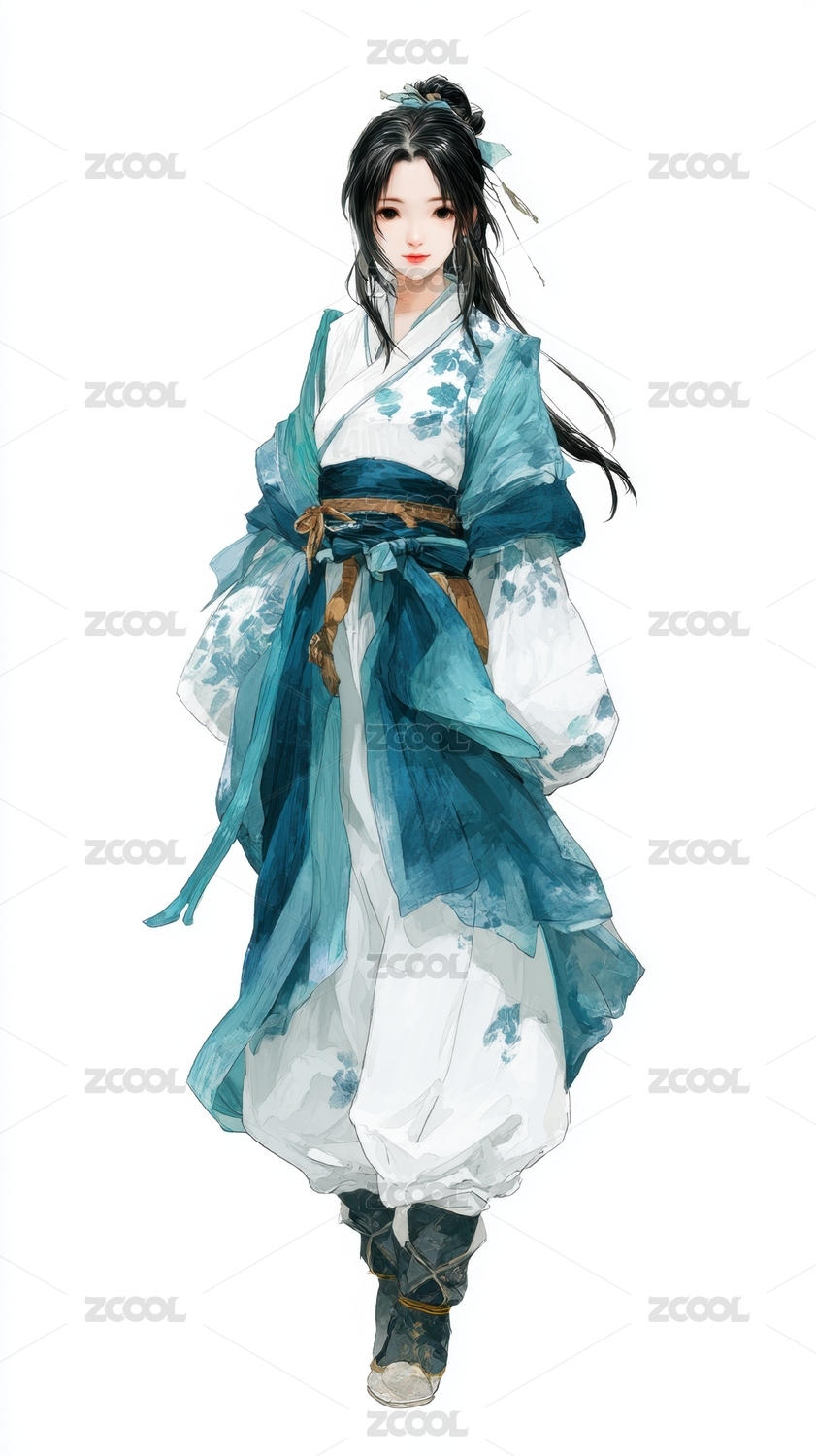 蓝色渐变古风人物